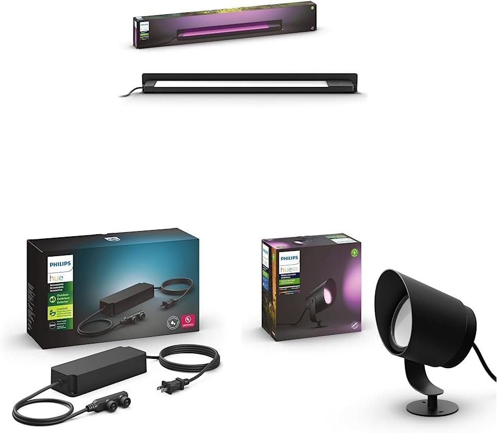 Product 1: Includes one Philips Hue Amarant color-changing outdoor light bar, one T Connector and one 8-foot extension cable; perfect for lighting walls, fences, pathways, hedges, and more