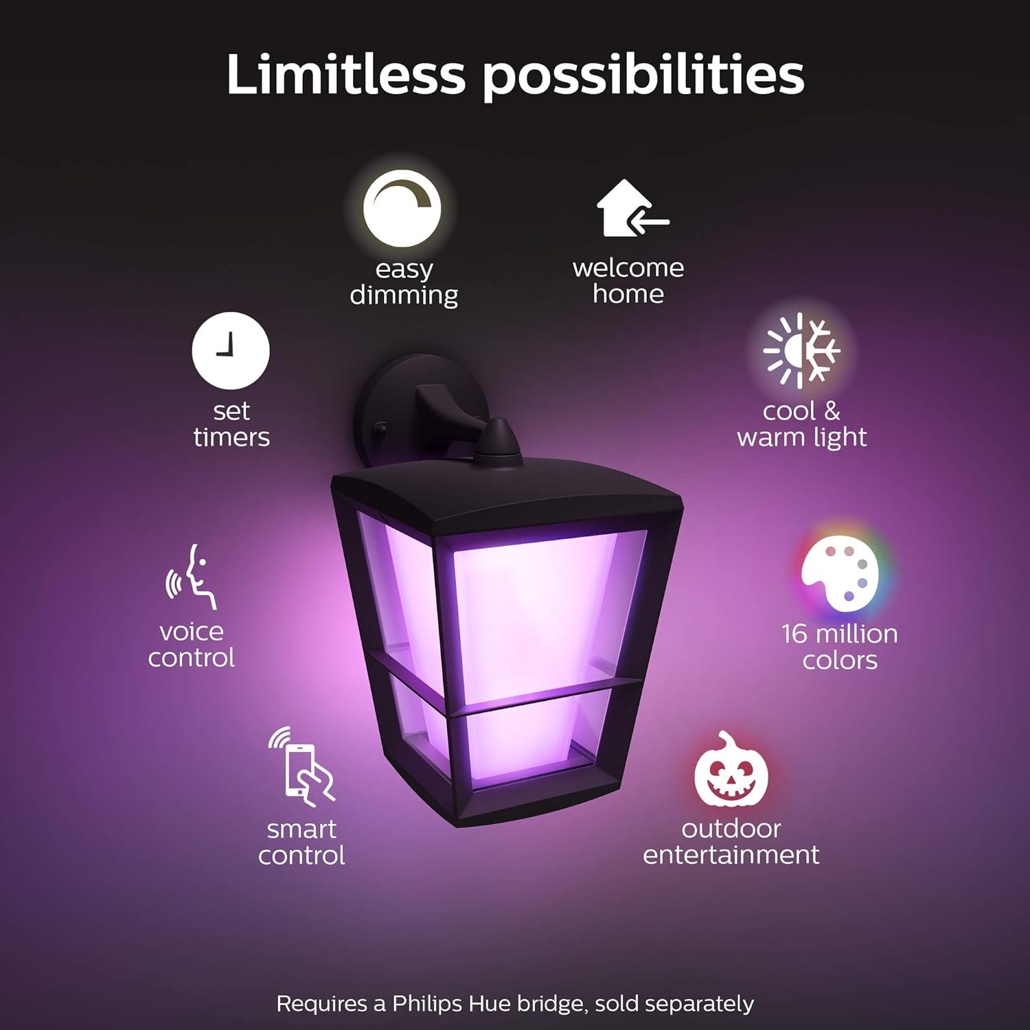 Includes one Philips Hue Econic down color-changing outdoor wall light and one Philips Hue Bridge to unlock full suite of Philips Hue smart lighting features