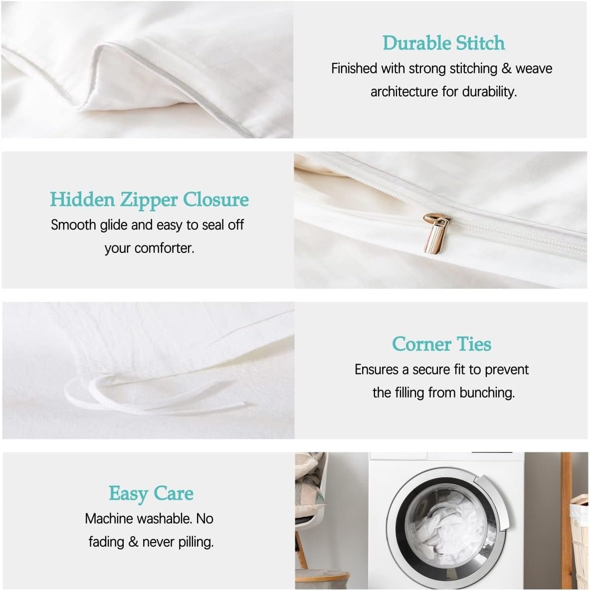【100% COTTON FABRIC】Our comforter cover set is made of 100% Cotton which is ultra soft & breathable to keep you cool in the summer and warm in the winter. These pure natural cotton bedding are distinctively comfy, smooth, keeping you comfortable all night and even gets softer with every wash. Perfect bedding set for all seasons.