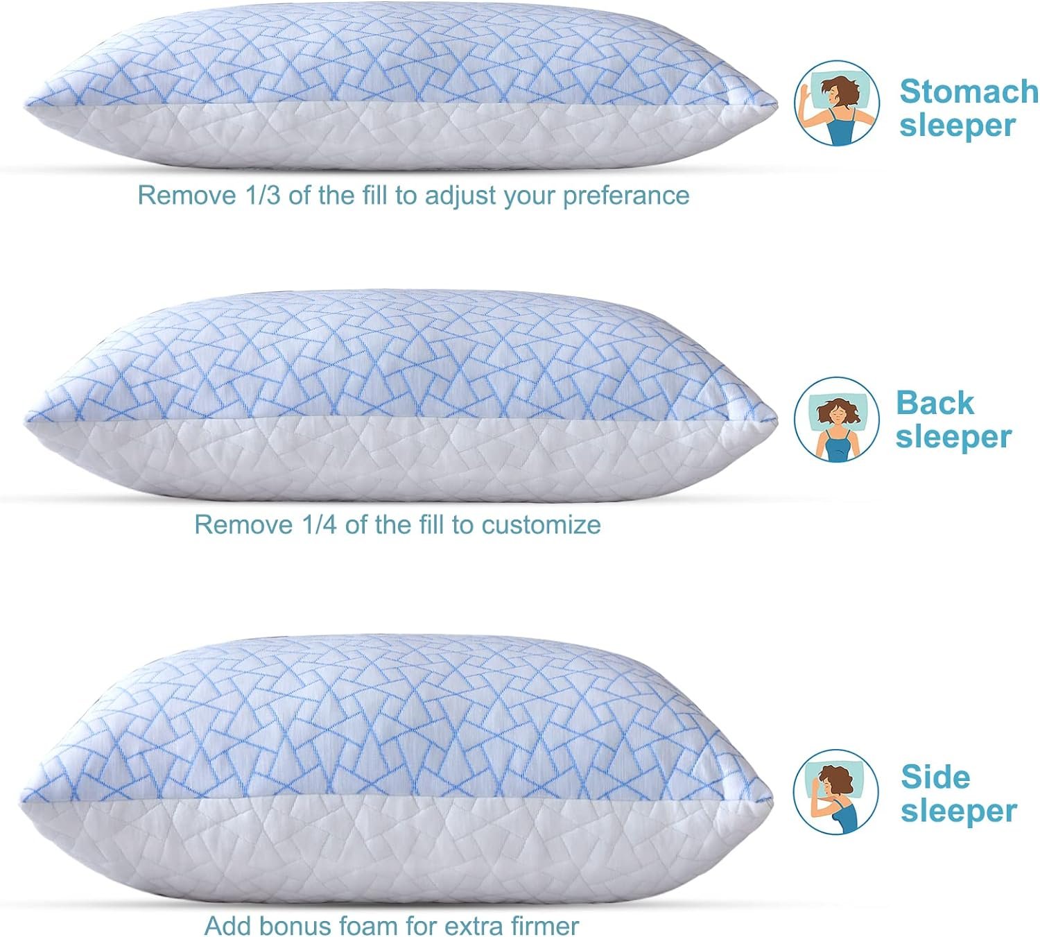 No more neck pain when sound sleeping, the shredded memory foam pillows give you the perfect amount of support for side and back sleeping. super soft, yet has a firmness.