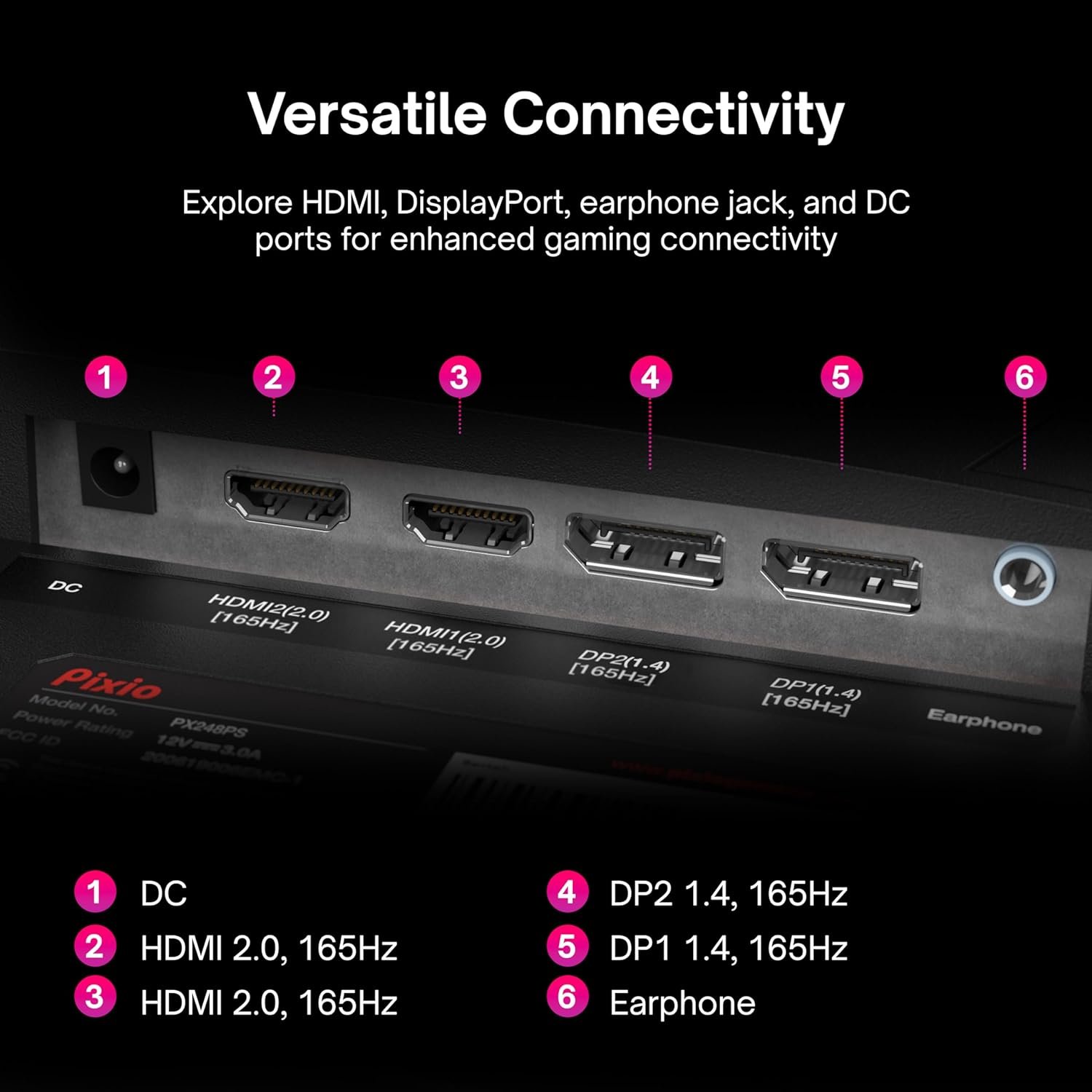 165HZ REFRESH RATE – Experience smoother gameplay and more immersive visuals in fast-paced games and high-action scenes with the 165Hz refresh rate of the Pixio PX248 Prime S monitor.