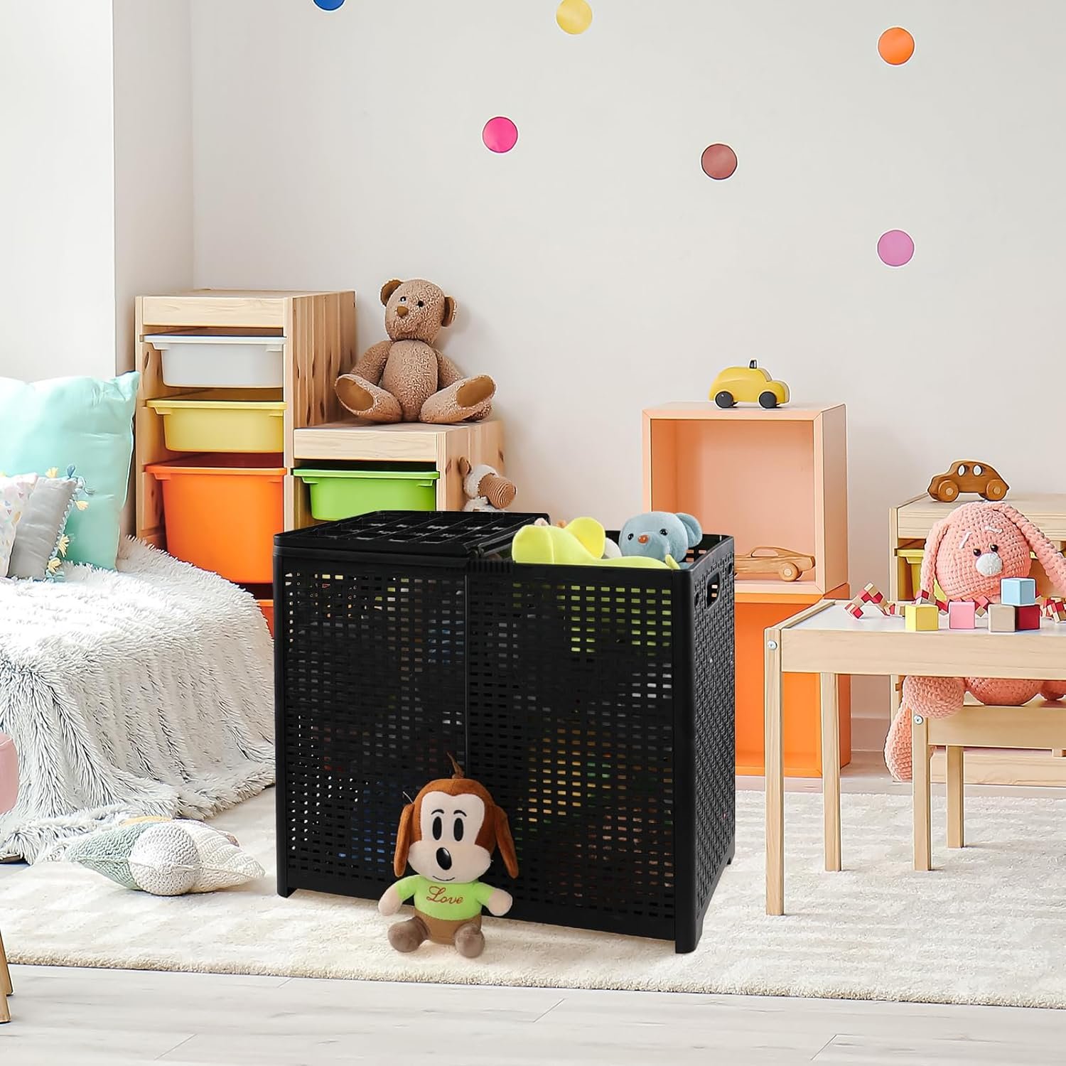 With a large storage capacity that you can use it to hold dirty or clean clothes, toys, towels, blankets, sheets or any other items in need of storage