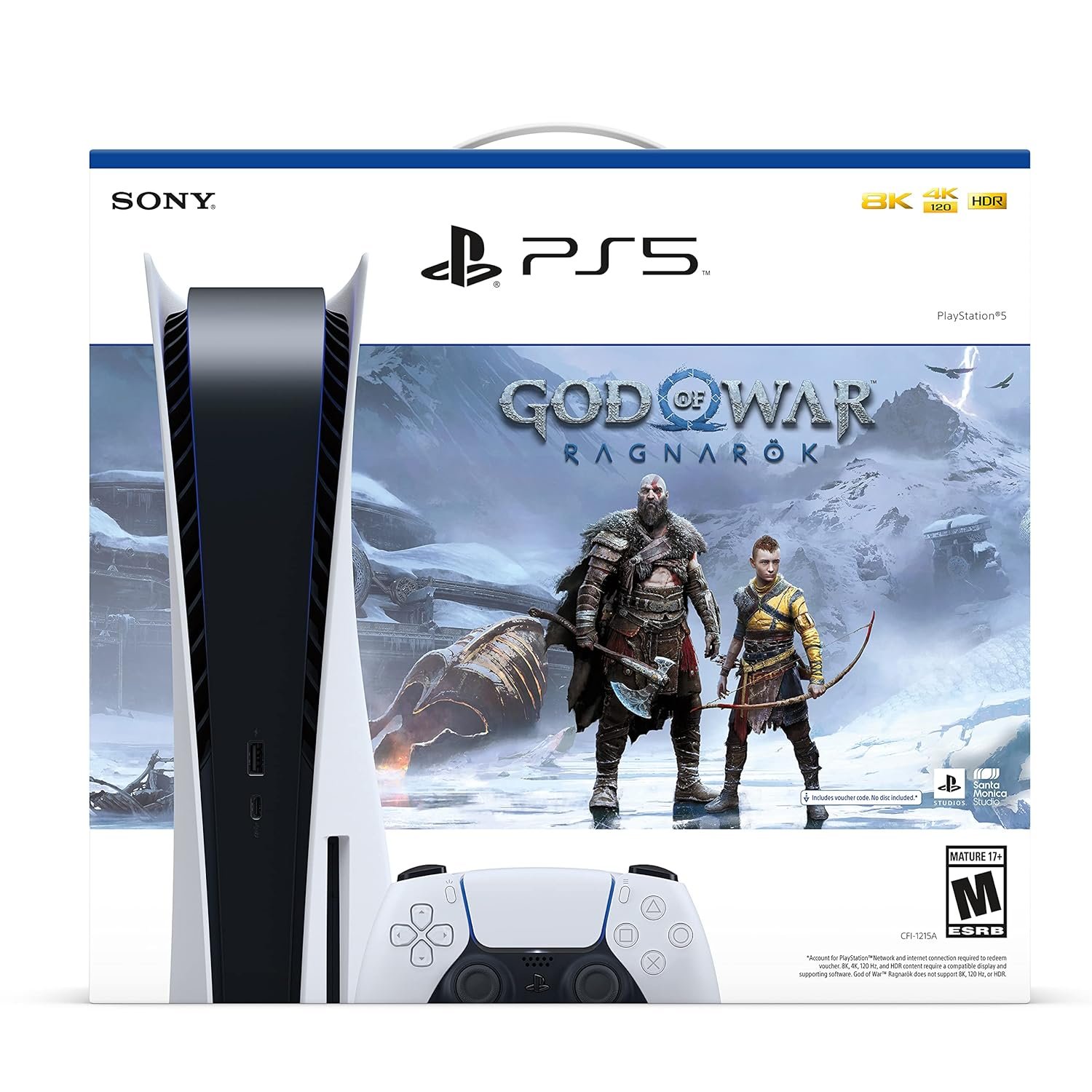 Play-Station 5 PS-5 Disc Version Gaming Console God of War Ragnarok Bundle with 4K UHD Blu-ray Player + 1 Controller – up to 120fps for Compatible Games, Support for 120Hz Output on 4K Displays