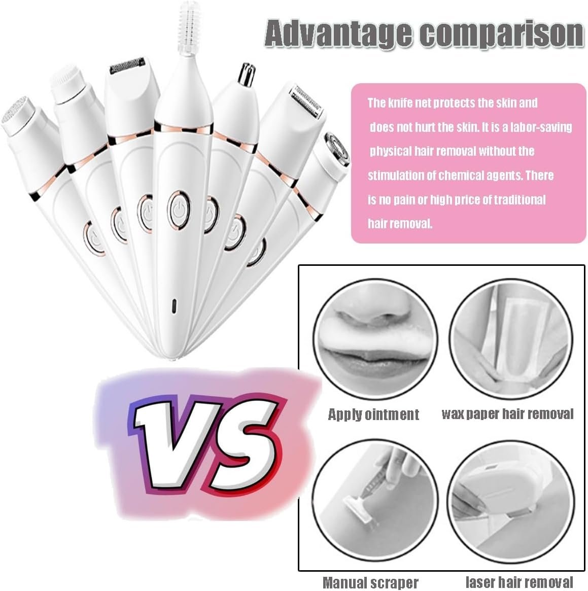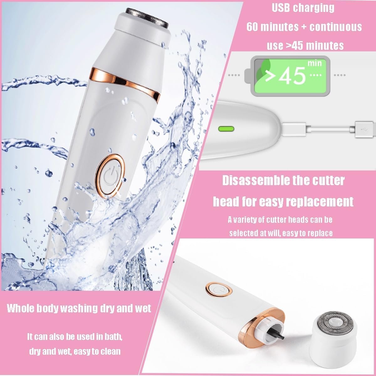 ✂ EASY TO USE: Say goodbye to traditional hair removal methods, suitable for all skin types. With this painless epilator, you can achieve baby-smooth skin and body hair by simply wiping hair after use. Equipped with a variety of functional cutter heads, all of which can be quickly detached and installed, leaving hair with nowhere to hide.