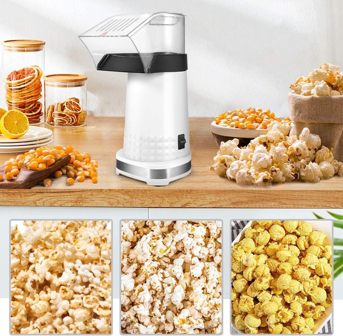 [ Quick Popping Hot Air Popcorn Maker] Air popper popcorn maker is easy as can be to pop a bowl of popcorn. Pour the measured amount of popcorn into the air chamber(only a cup), make sure the lid is on, then press the on button, and in 3 minutes or less you have a bowl of popcorn!