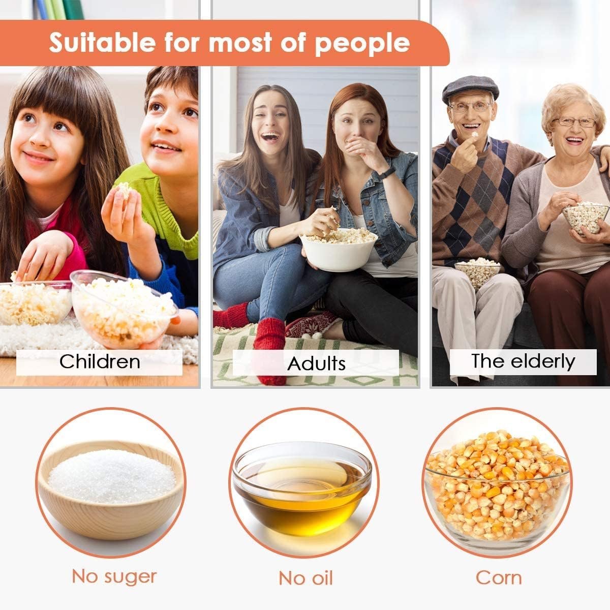 [ Healthy & DIY Tasty Snacks] The air popcorn popper uses hot air (no oil ) to quickly and efficiently pop fresh popcorn. Delicious, fresh, and healthy, no oil, Low calories all natural with no salt or artificial flavors. Of course, if you crave a more flavorful snack, butter it up or add salt and flavorings after the corn has popped.