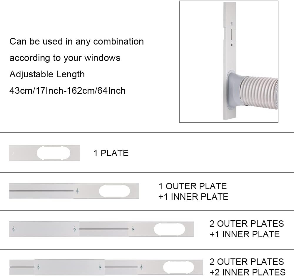 DURABLE & WIDE COMPATIBILITY: The window vent kit for portable AC unit consists of four plates, is made of durable PVC materials, recommended max extend length 162cm/64Inch, light weight, portable, suit for using in home or office.