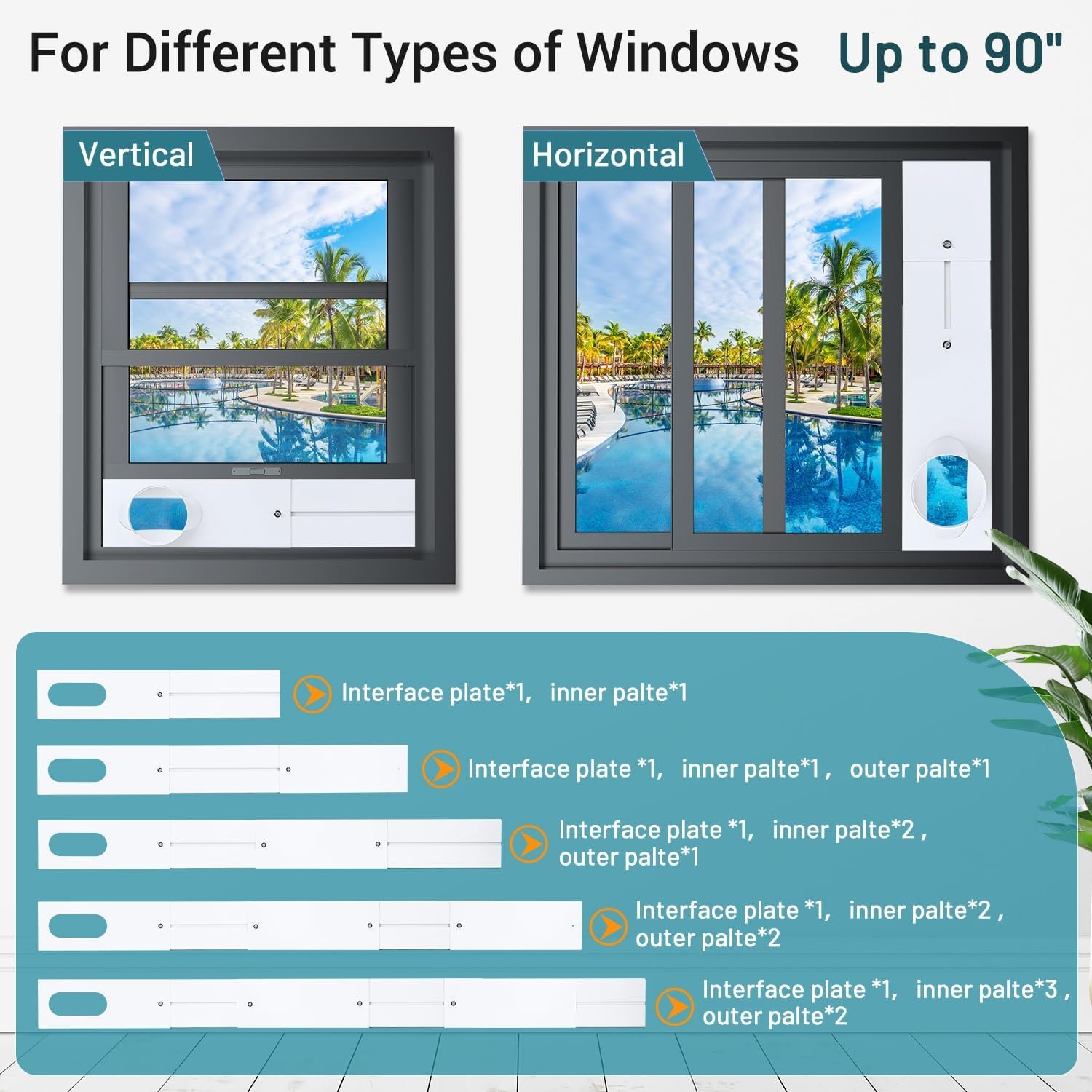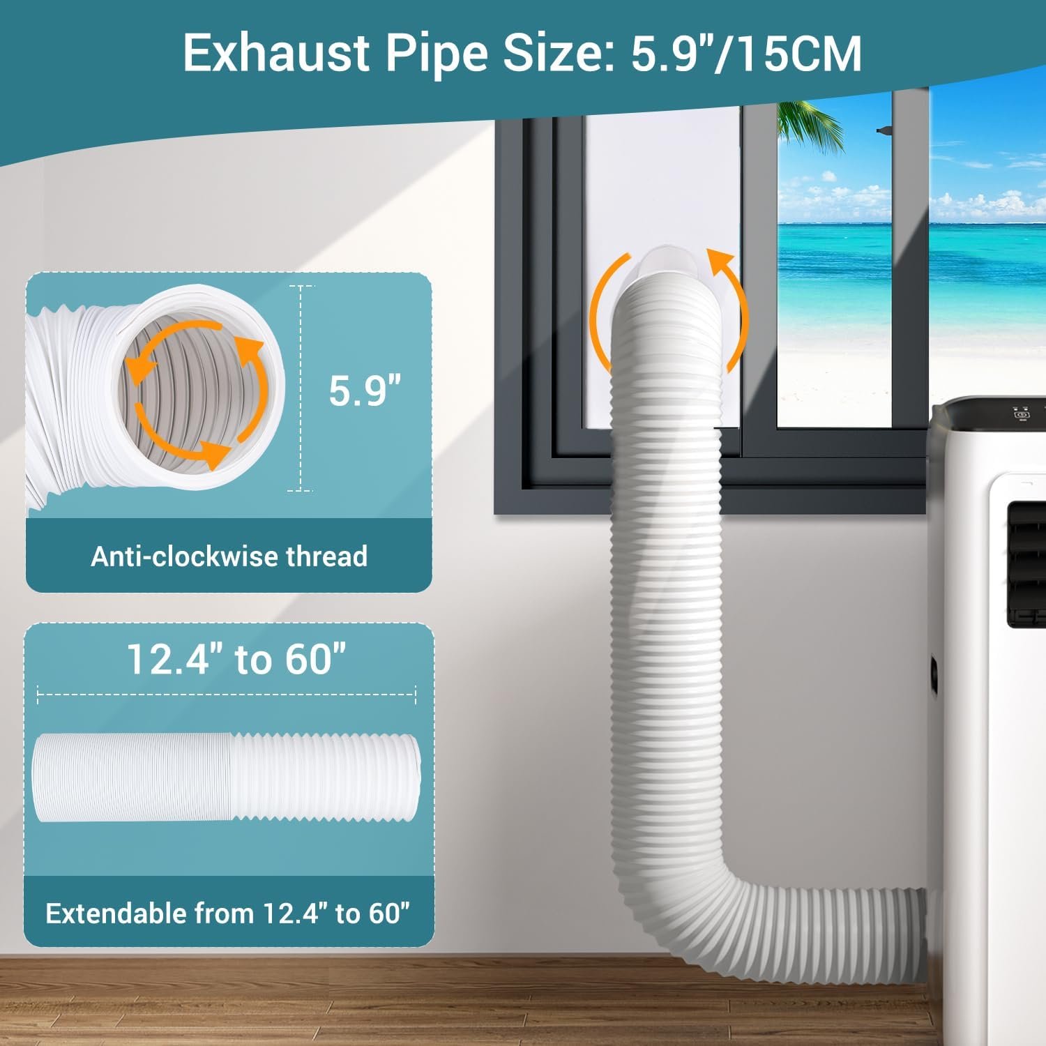 【Up to 90″ Lenth】- Air conditioner window kit includes 6 sealed window panels with 17 inches length, which can be adjusted from 17″ to 90″, and the air conditioner exhaust pipe can be extended from 12.4″ to 60″, for a wide range of applications.