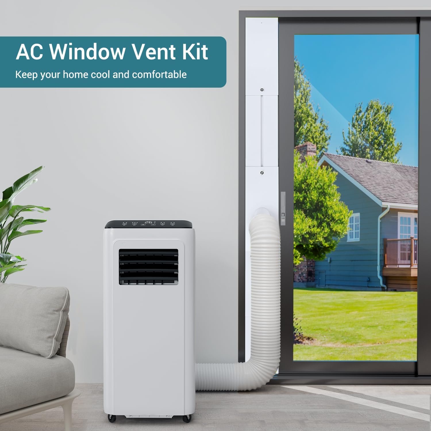 【Sseamless Connection】 The portable ac window vent kit sealing performance has been newly upgraded, no need for sealing tape and allowing for a tight fit to the window, keeping the room cooler at all times and saving electricity.