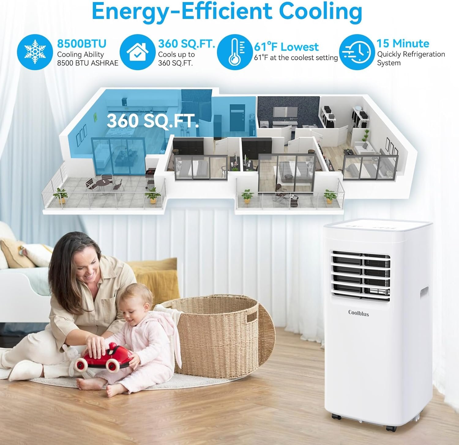 3-in-1 : Elevate your comfort with our 3-in-1 portable air conditioner (5,100 BTU DOE / 8500 BTU ASHRAE). It cools, dehumidifies, and functions as a fan with adjustable speed and auto air swing,cooling to 61-88°F at the setting.The user-friendly LED control panel, remote control, and automatic restart after a power outage make it a hassle-free solution for uninterrupted comfort. Experience comprehensive climate control for a cool and comfortable living space.