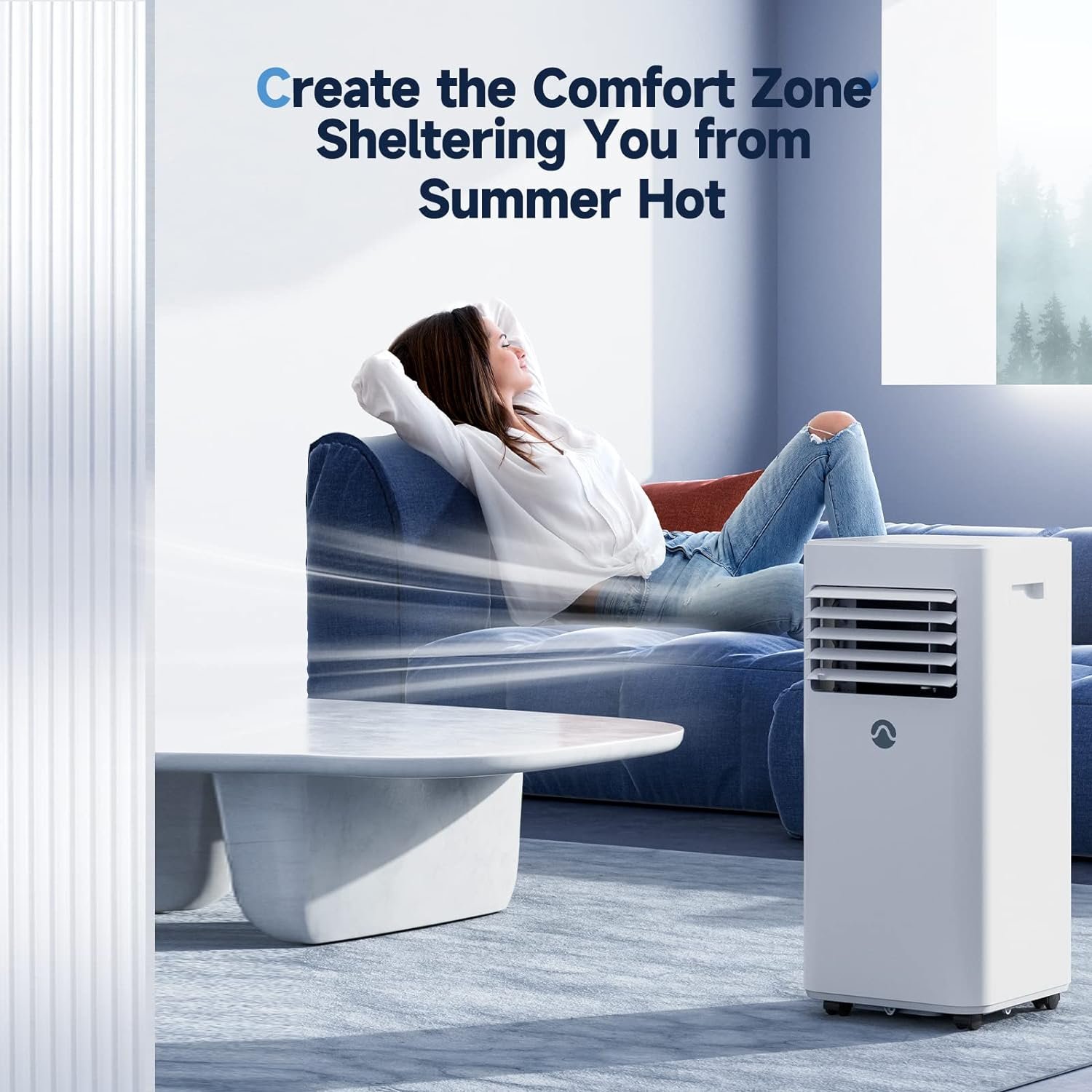 【User-Friendly Considerate Design】 A 24-hour timer of the ac unit portable allows you to set the on and off time, providing coolness once you step into the room or helping you save energy. Sleep tight at night under sleep mode with dimmed light and lowered noise. Activate the child lock function to lock the screen when toddlers or pets are around.