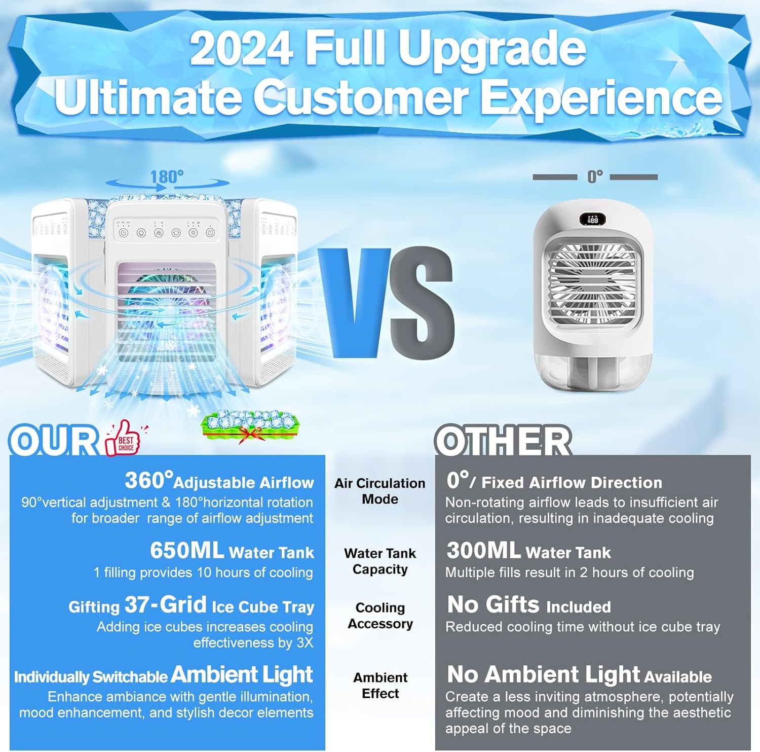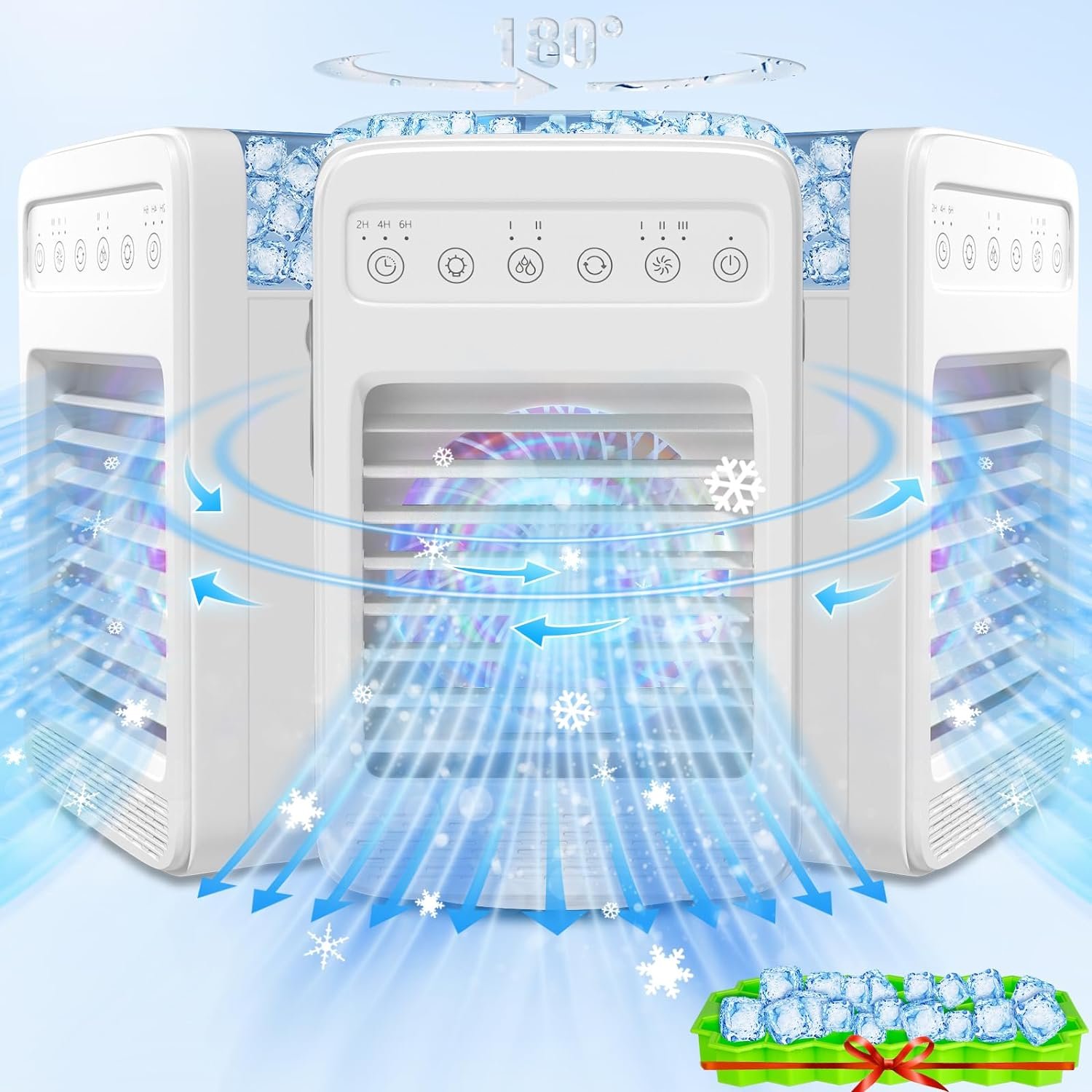 ❄️【Extended Cooling Comfort】 Enjoy uninterrupted relief from the heat with our portable air conditioner’s large water tank, offering 2x to 3x the capacity of comparable units. Experience up to 9 hours of extended cooling, providing immediate comfort during scorching summer days. Add ice cubes to the tank with our complimentary 37-grid silicone ice cube tray to intensify the cooling effect, ensuring sustained comfort even in the hottest weather.