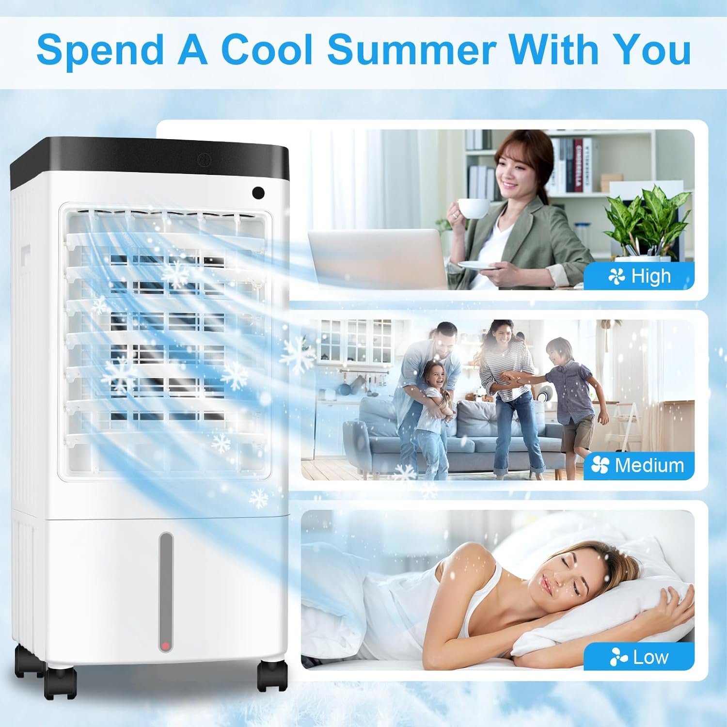 ❄【3-in-1 Portable Air Conditioner】: The air conditioner can be used as a cooler, humidifier and fan. The humidification function of the air conditioner can increase air humidity, maintain skin moisture, and reduce dryness in dry seasons. Air conditioner fans are available in low/medium/high-speed options and can be used with coolers to lower temperatures, circulate air, or balance air humidity. With air conditioner, you can have a healthier and more comfortable living or working environment.