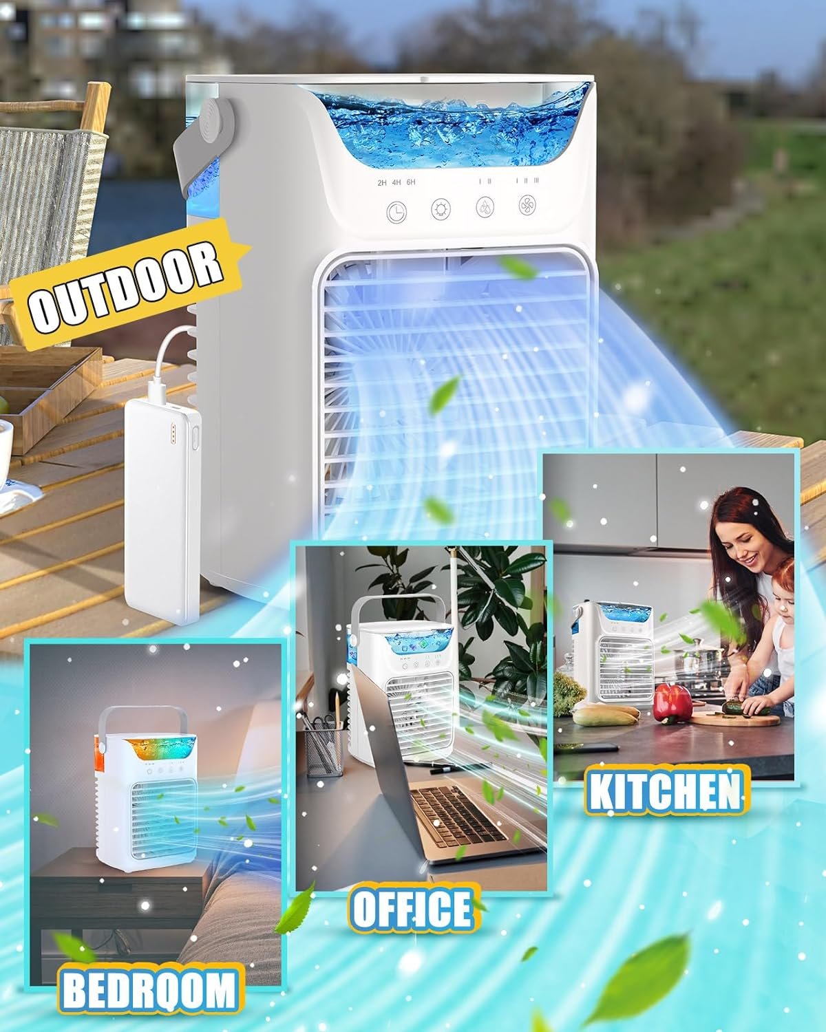 ⚡【Ultra-Quiet & 2-6H Timer】❉ Evaporative air cooler operates in ultra-low noise mode, allowing you to enjoy the gentle natural wind while sleeping peacefully. In addition, there are timing functions, three automatic timing (2/4/6H), you can choose the most suitable for you to enjoy your leisure, sleep or work time.