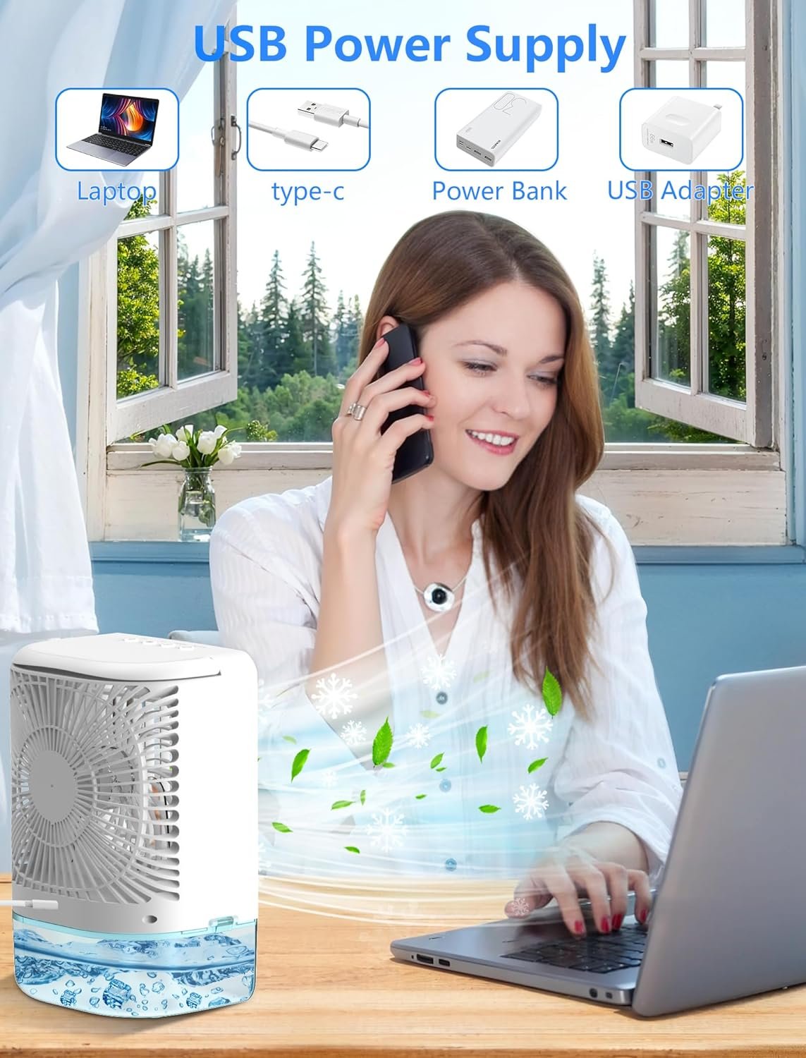 ❄【4 in 1 Mini Air Conditioning Fan】Orvina Mini air conditioning set ordinary fan (no water and no ice), humidifier (with water), portable air conditioning (with ice and water), night light in one, four major functions. Add ice water and ice cubes to cool small areas of hot, dry air. No installation required, no internal battery.
