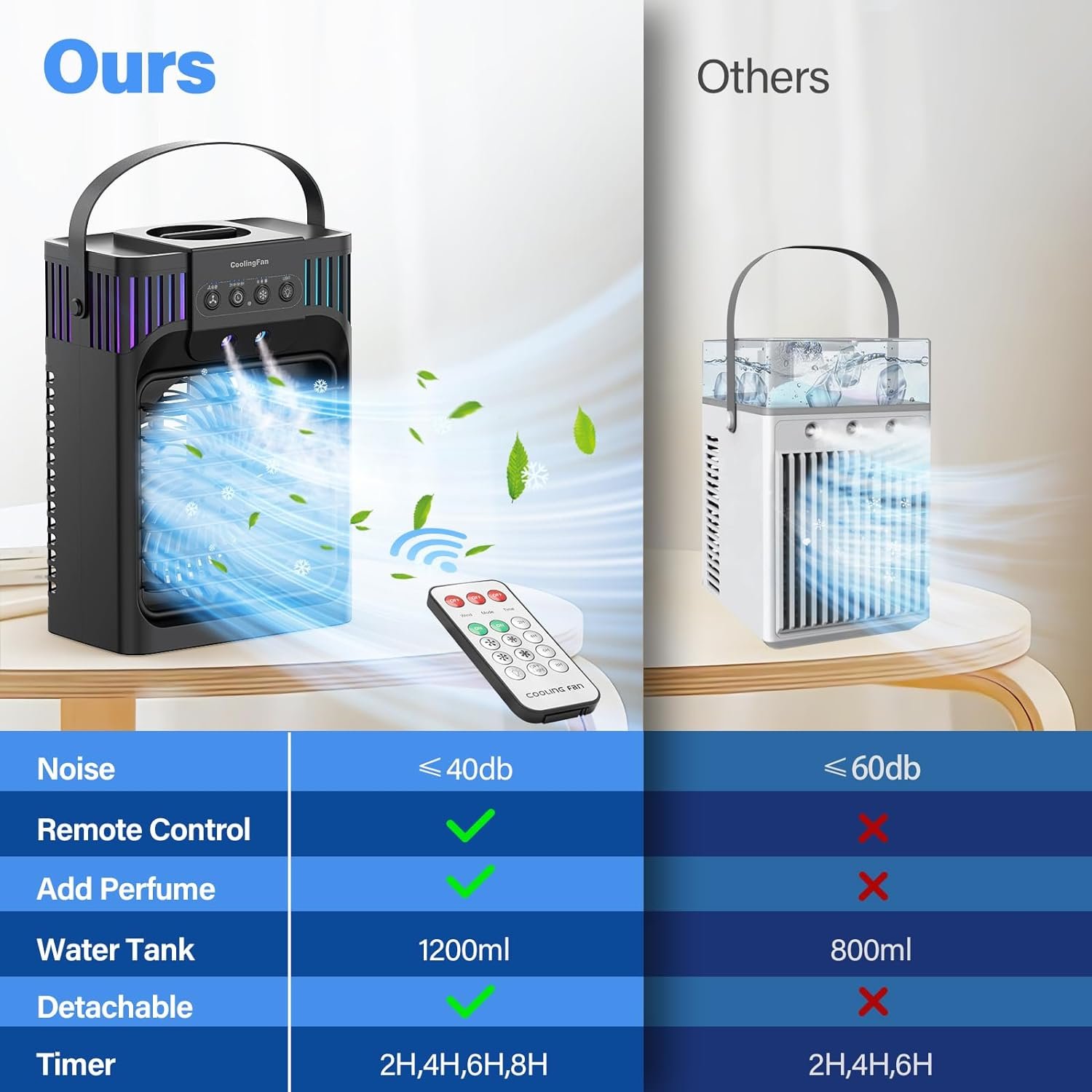Upgraded Portable air conditioners with 1200ml Large Water Tank