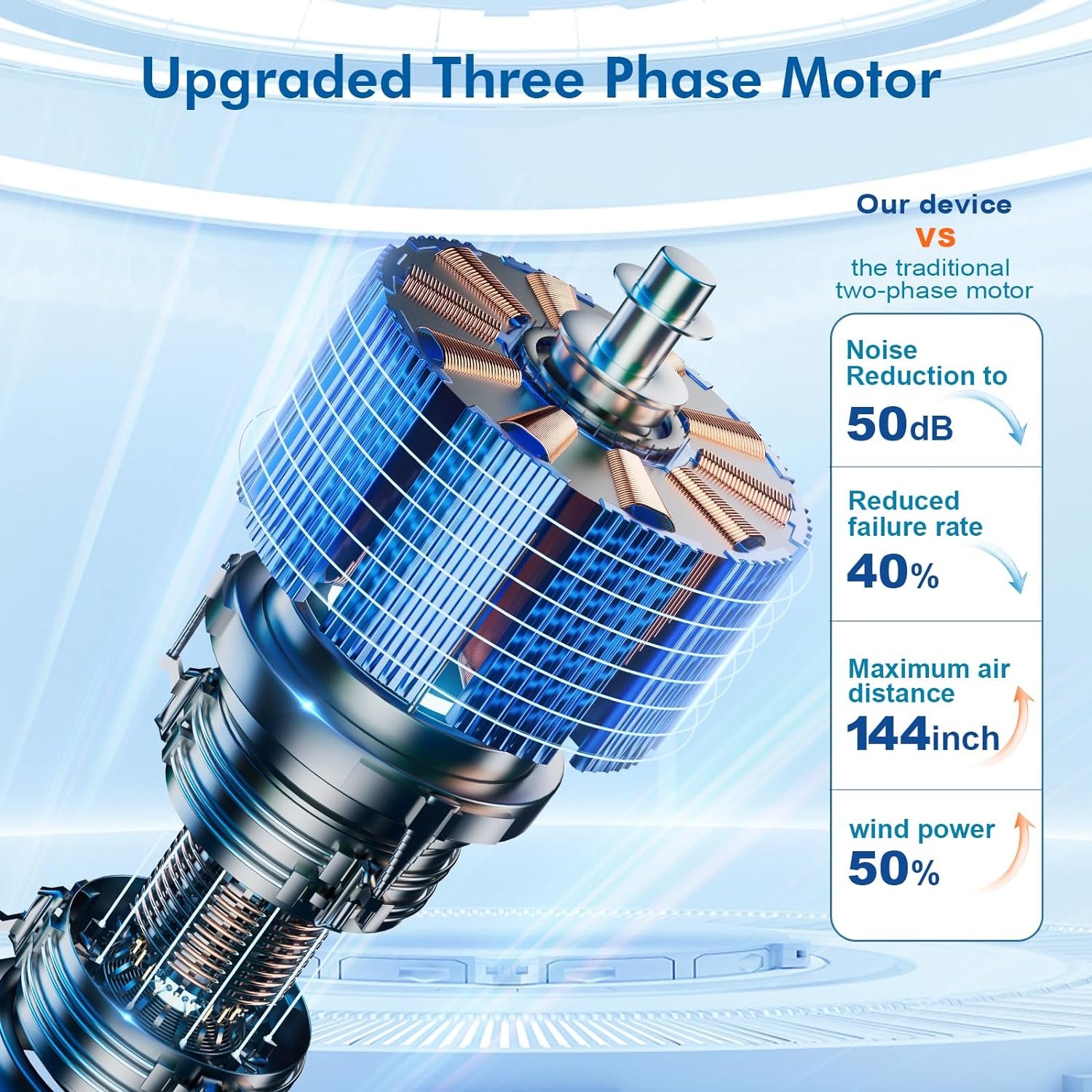 ❄ 【Upgraded super strong three-phase motor】RCCVEIPortable Air Conditioners are equipped with three-phase motors with higher efficiency and stronger power output, stronger wind power, balanced electromagnetic fields, more stable operation, improved service life of the ac unit, reduced noise during use, and lower energy consumption, reducing energy costs.