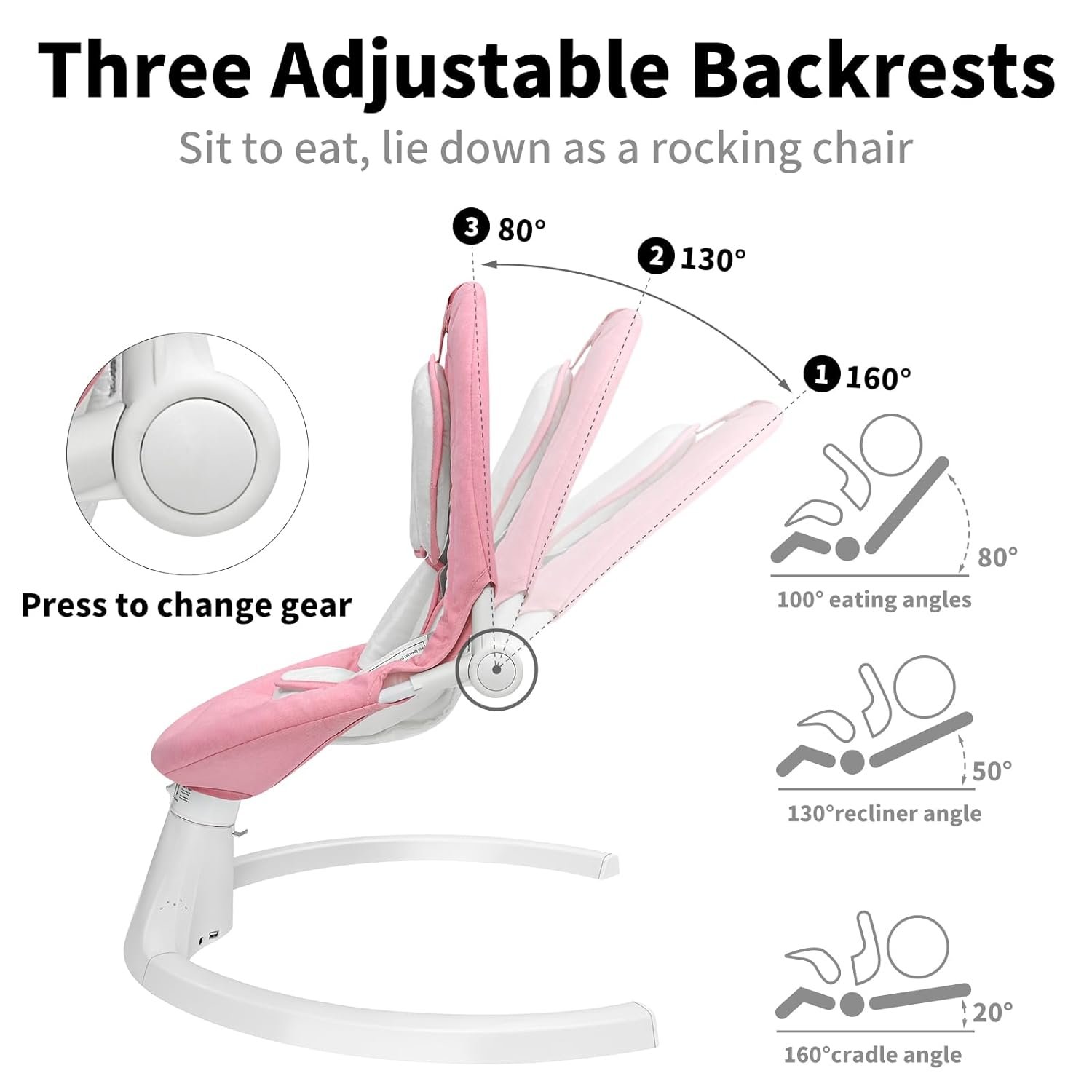 Unique Motion Control Function: Drinany baby swing has a unique motion control function. When your baby falls asleep, the swing automatically stops swinging. If your baby wakes up during the swing, it will restart the swinging motion. It offers 5 different swing amplitudes, designed with gradual and gentle differences between each level of swinging motion to better ensure the safety of newborns.