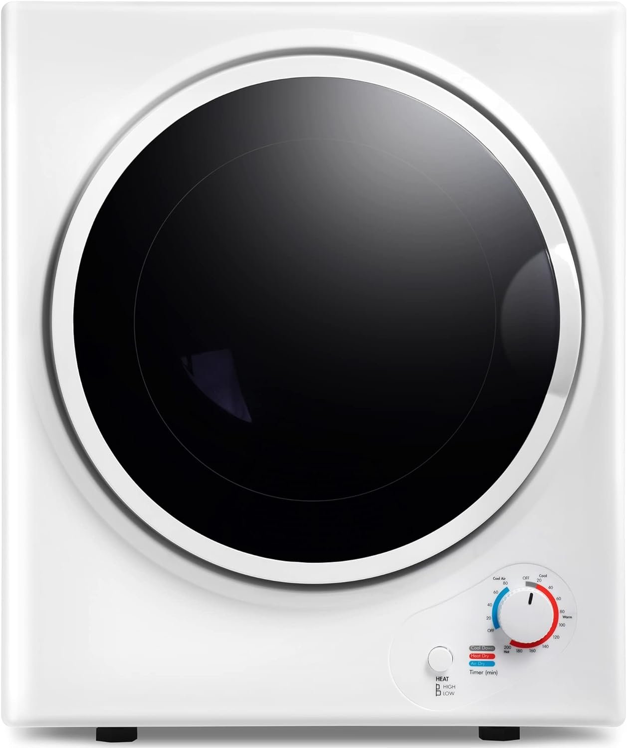 Suitable for most clothes, you can set different modes according to different fabrics and weights:COOL DOWN (0-20mins): for delicates; WARM (30-120mins): standard drying; HOT (120-200min): drying bulky loads; ANTI-WRINKLE (30-60min): wrinkle prevention; AIR DRY (0-80mins) for delicates. The dryer can reach temperatures up to 155°F to achieve accelerated drying in as fast as 20 minutes.