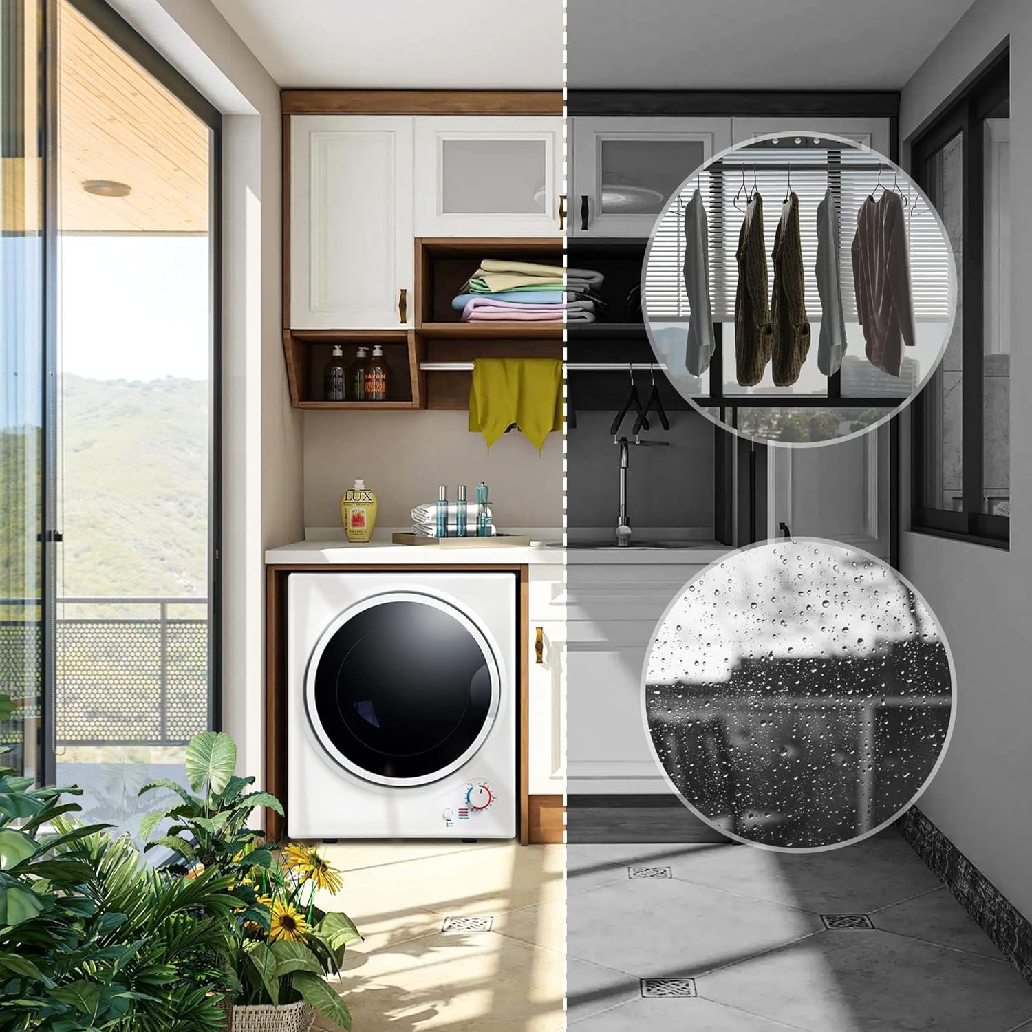 💦Intelligent Drying System: The temperature sensor automatically adjusts the drying time based on clothes’ temperature, ensuring efficient and safe drying. The bidirectional rotating drum leaves your clothes wrinkle-free.