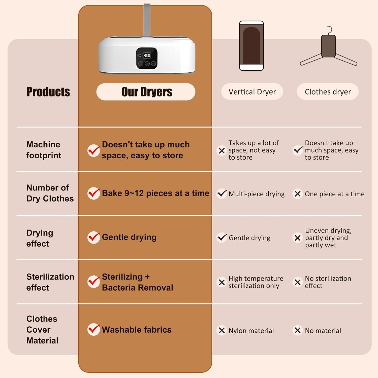 Our smart portable clothes dryer is timed for 60-480 minutes, so you can do other things