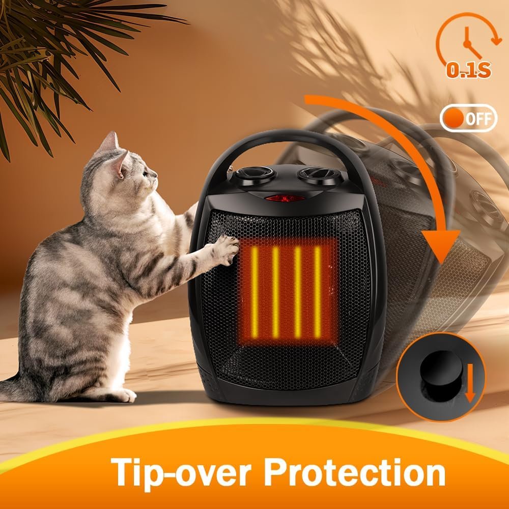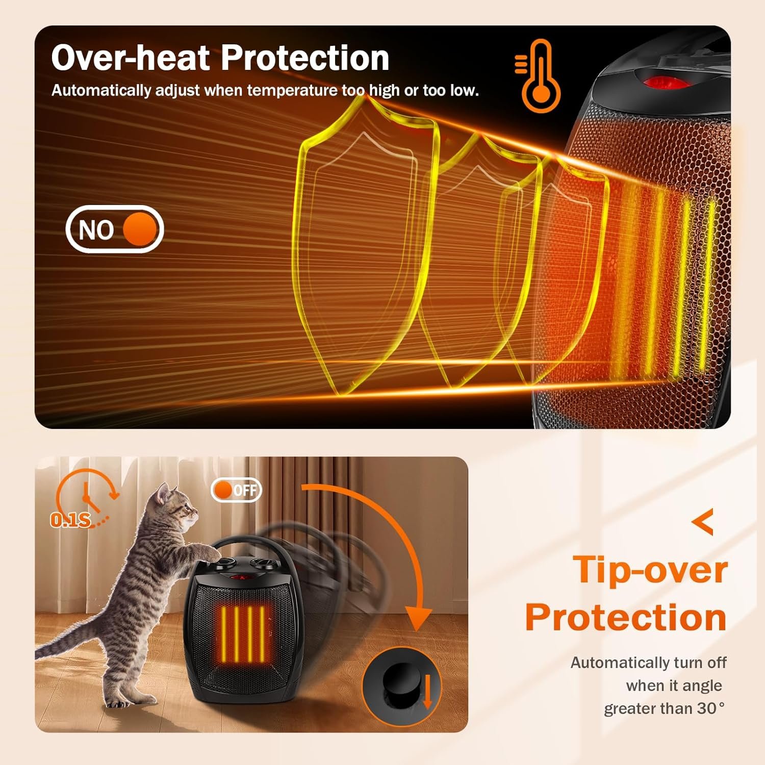 MULTIPLE SAFETY PROTECTIONS: The portable space heater fan features built-in overheat protection, the overheat protection system automatically shuts off the heater when the temperature becomes too high. The tip-over protection function also automatically turns off the heater if it accidentally tips over. Once the portable heater is placed back in a stable position, it resumes operation automatically.