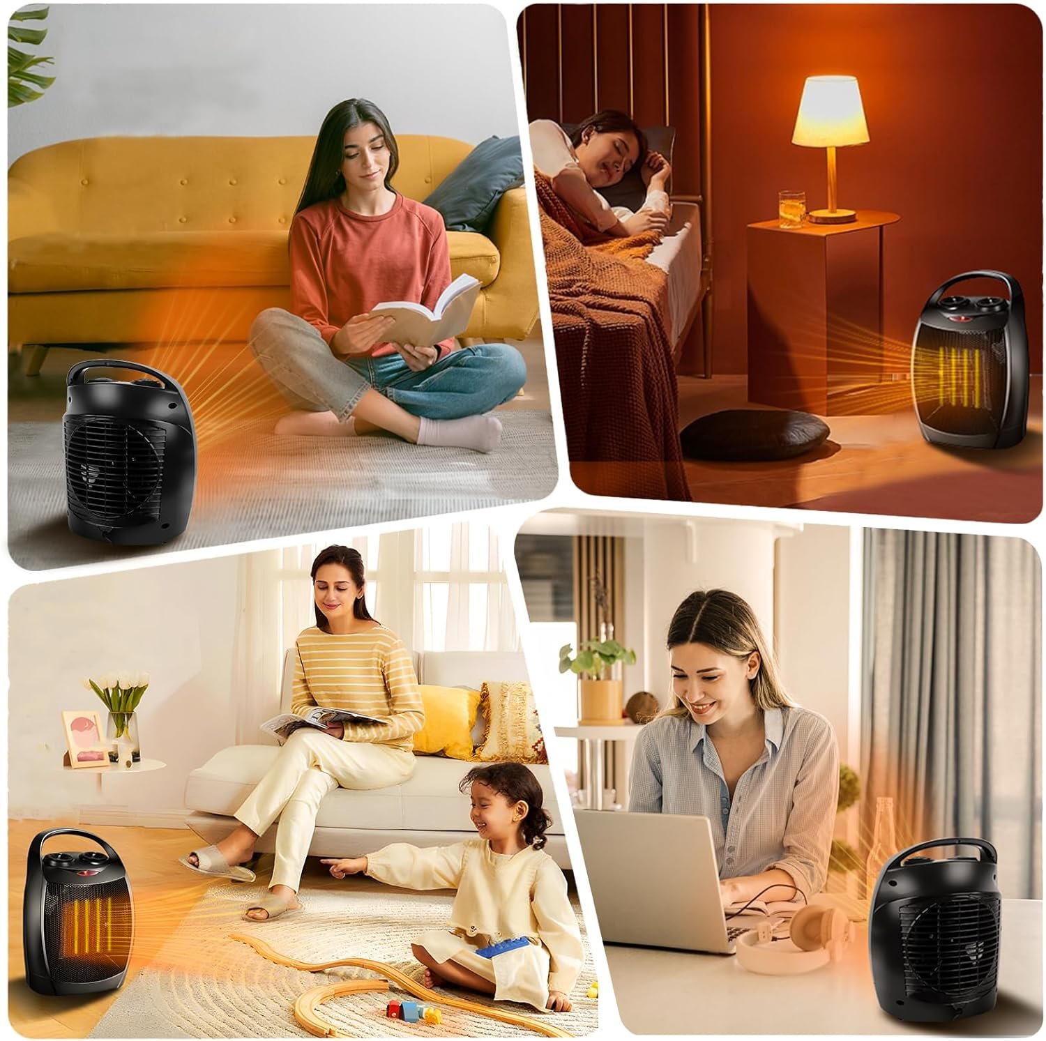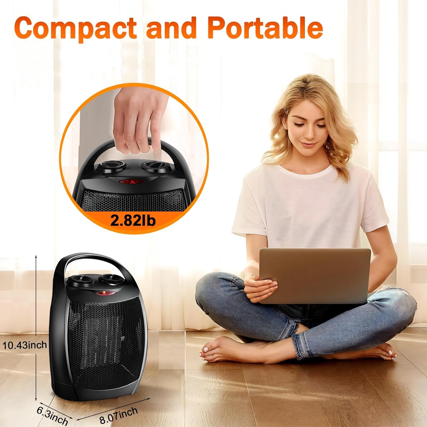 COMPACT AND POWERFUL DESIGN: The infrared heater comes with a six-foot long ABS material cord and a two-core connection, ETL Certification Provides Additional Protection, ensuring a long lifespan. The portable mini heater features a slim and compact design, measuring 8inches x 6inches x 10inches and weighing 2.8 pounds.The heaters indoor portable electric also comes with a built-in handle for easy indoor mobility.