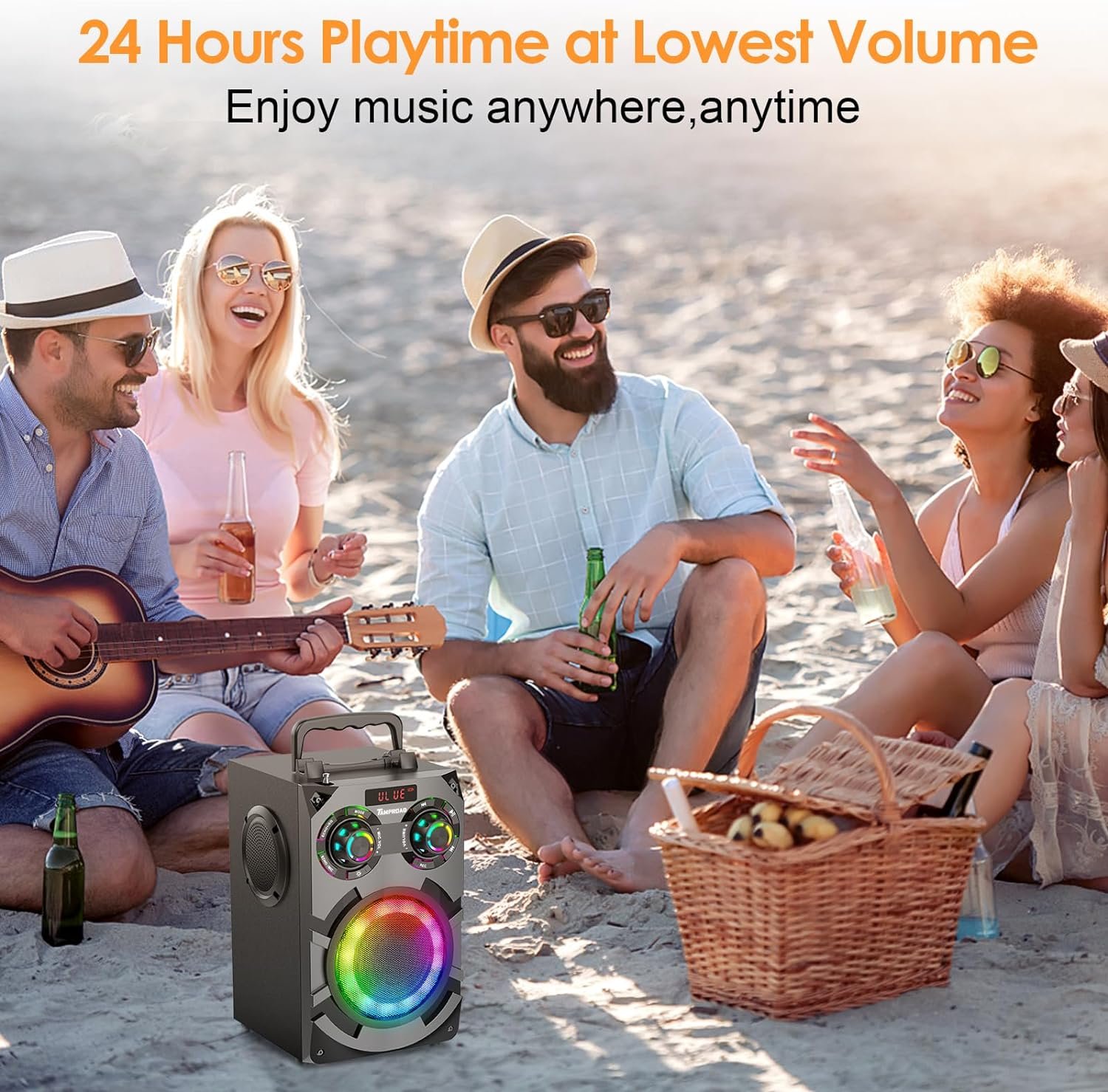 8000mAh Battery — Up to 6-24 hours playtimes, bring the party anywhere(Depends on the volume played and the type of song)