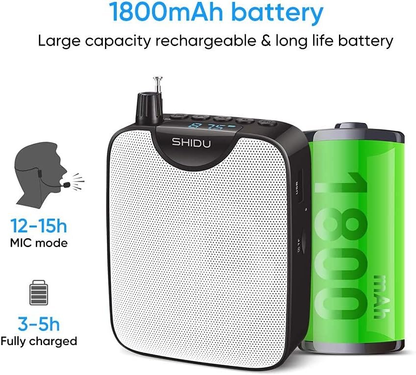 RECHARGEABLE VOICE AMPLIFIER – Built-in 1800 mAh rechargeable lithium battery, Working time is up to 12 – 15 hours, Only needs 3~5 hours to fully charge it. The LED indicator will remind you of charging in advance. Don’t worry about no power supply suddenly. You can use USB cable to charge this mini voice amplifier