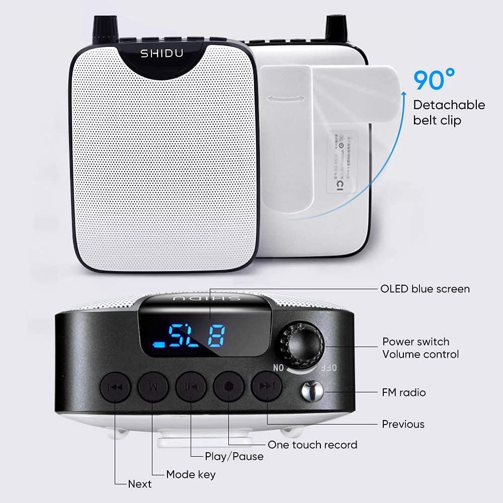 LIGHTWEIGHT BUT POWERFUL – SHIDU voice amplifier reduces your weight burden, It is only 4.5 x 3.4 x 1.8 inches and 9.98 ounces. You can also use a waistbelt to tie it around your waist or hang it on your neck, This is convenient for you to talk to your students or group members