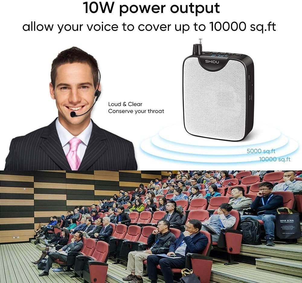 PROFESSIONAL VOICE AMPLIFIER – Not only amplifys your voice and saves your throat but also the sound is clear, crisp, no noise and no distortion. The max 10 watts sound can cover about 10000 sq. ft (1000 ㎡), loud enough to cover a big room. Suitable for teaches, trainer, singer, coacher, tour guide, shopping mall, presentation, meeting, outdoor speech, etc