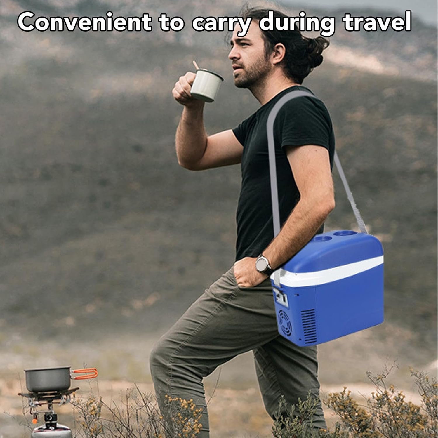 Our Mini Car Refrigerator is designed to add convenience to your travels. This dual-function cooling and heating fridge holds up to 7 liters, making it ideal for keeping beverages and snacks fresh on the . The fridge comes equipped with a cigarette lighter power socket compatible with DC 12V voltage, offering convenience and peace of mind. Its portable design features a convenient backpack strap, making it easy to transport in and out of the car, home, or outdoor settings. Perfectly compact, it saves space and is easy to store.