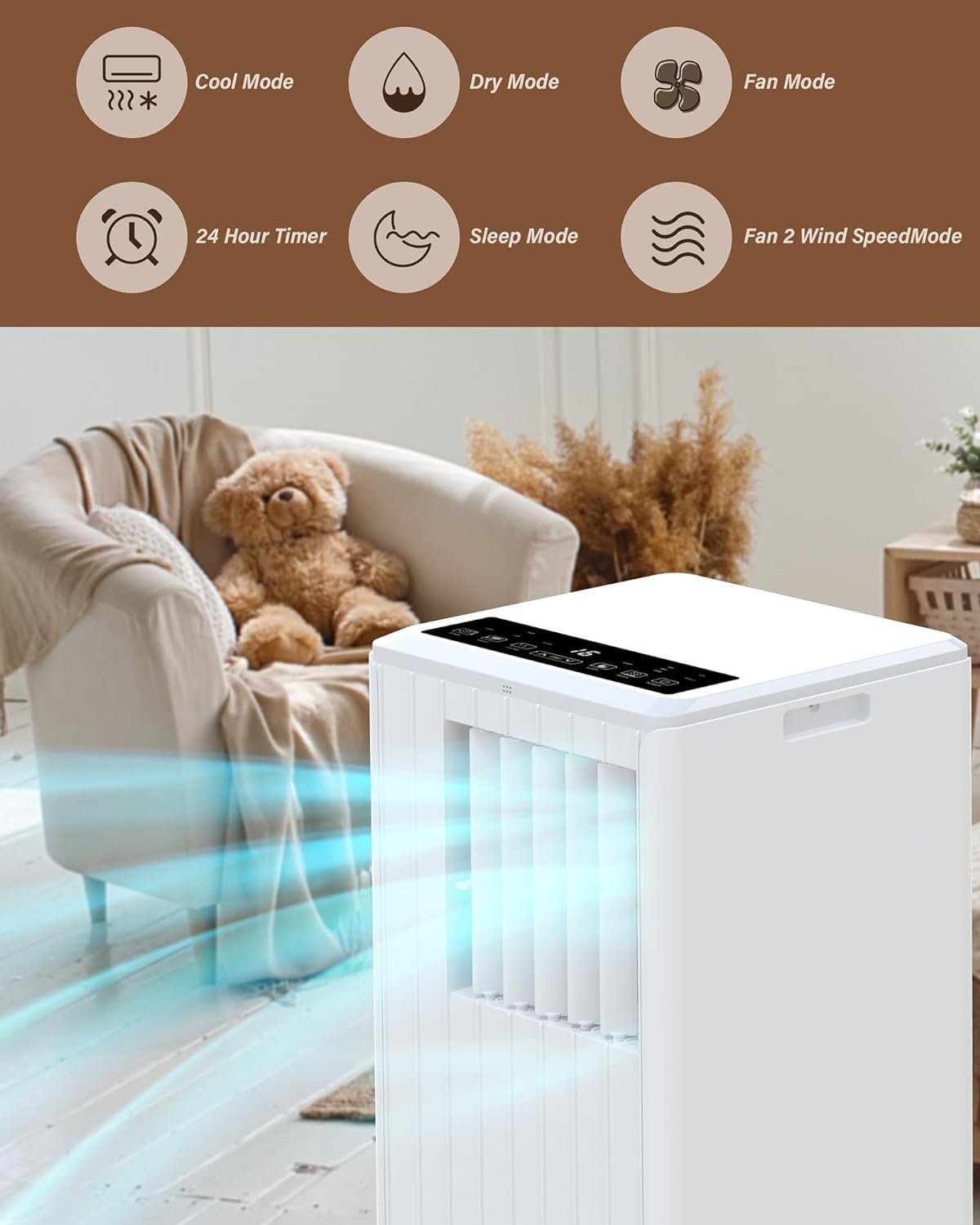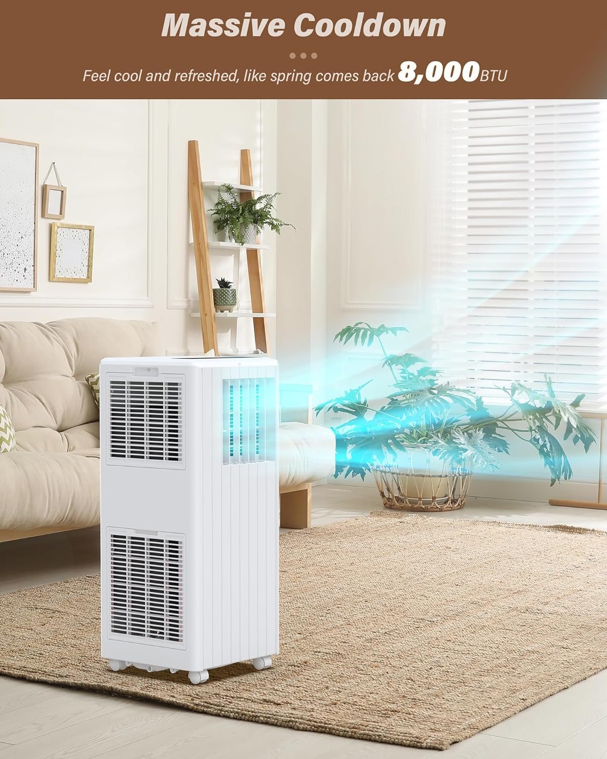 【8000 BTU Portable AC Unit】8000 BTU Portable Air Conditioners with a power energy efficient compressor that can fastly consistent air cooling for 350 sq. ft. Great for bedrooms, flats, living rooms, home kitchens, offices, game rooms, cabins, and more.