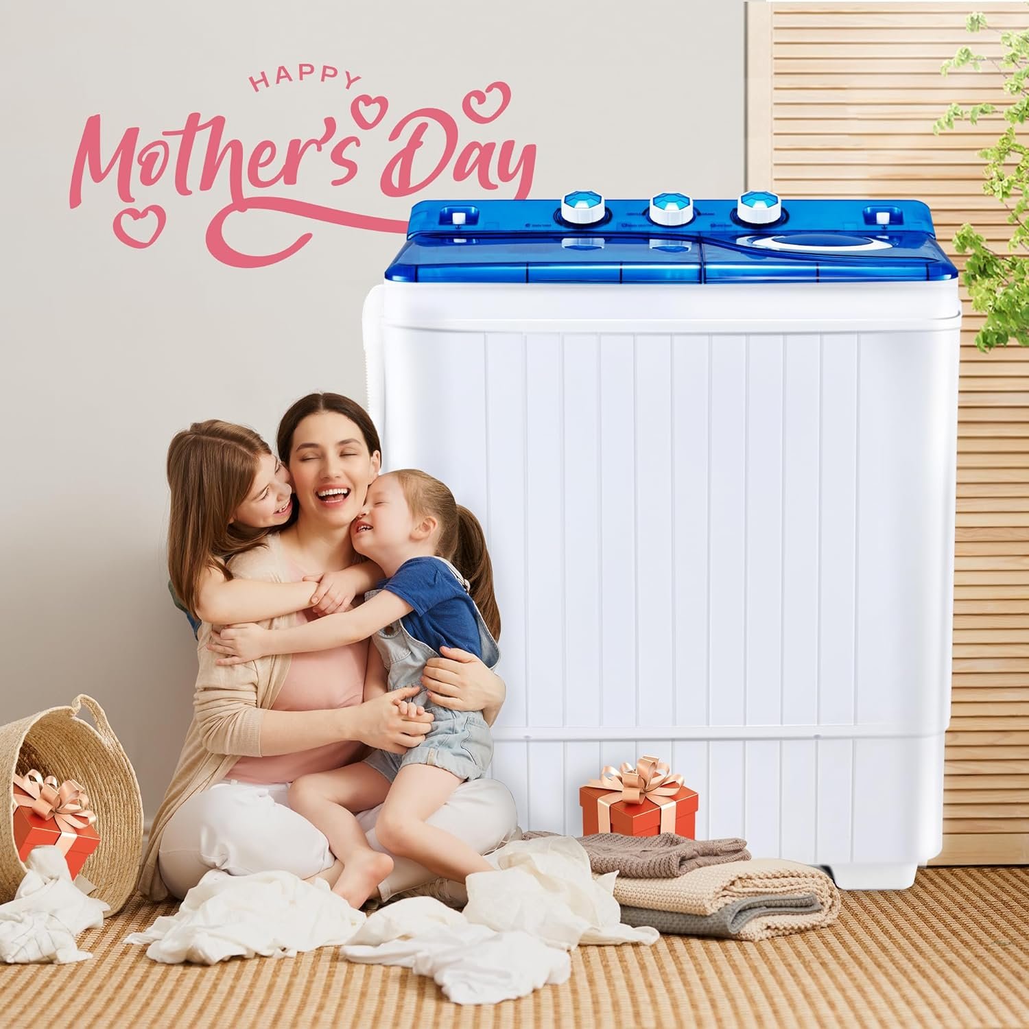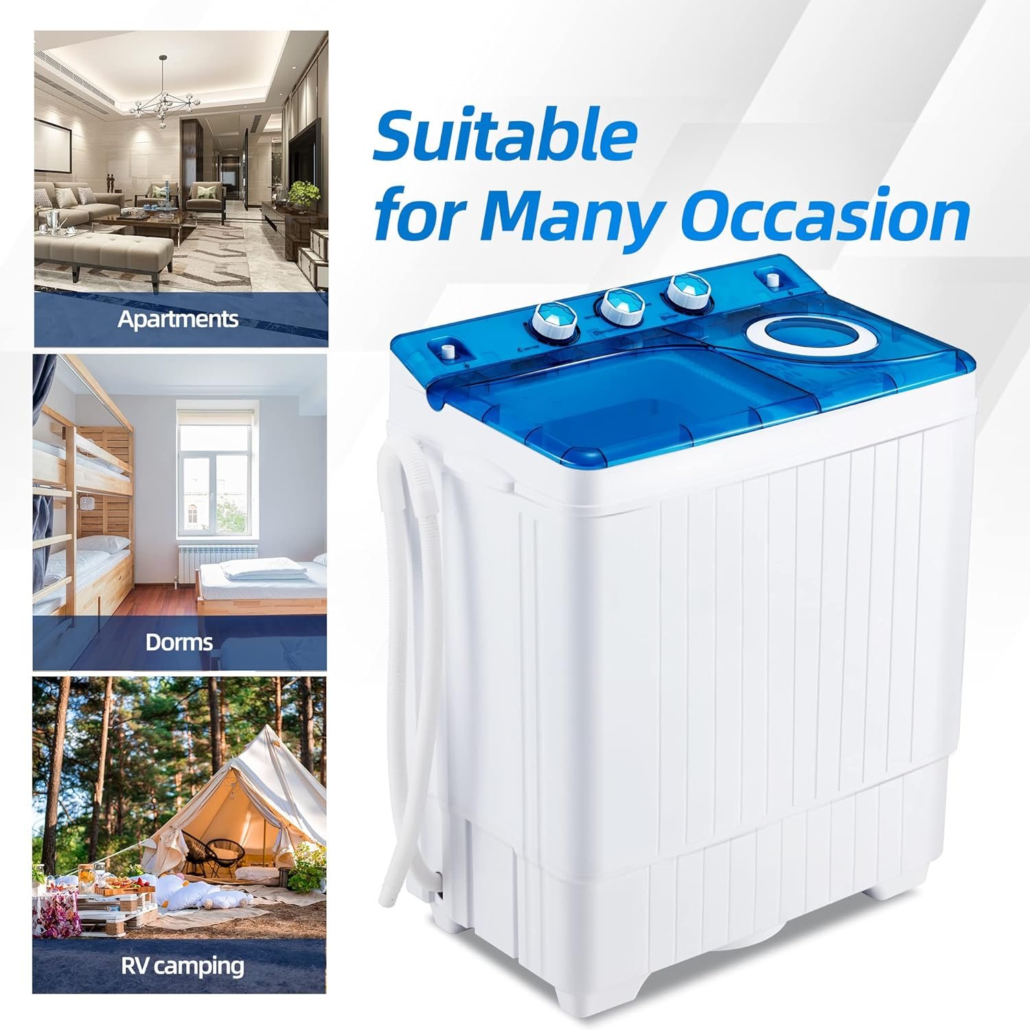 Portable Washing machine 26Lbs Capacity Mini Washer and Dryer Combo Compact Twin Tub Laundry Washer(18Lbs) & Spinner(8Lbs) with Built-in Gravity Drain,Low Noise for Apartment,Dorms,RV Camping, BLUE