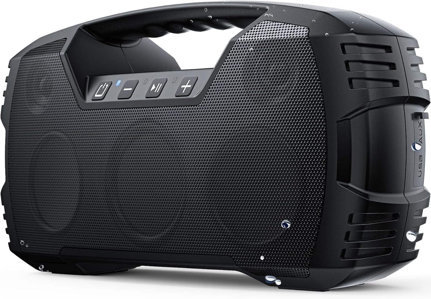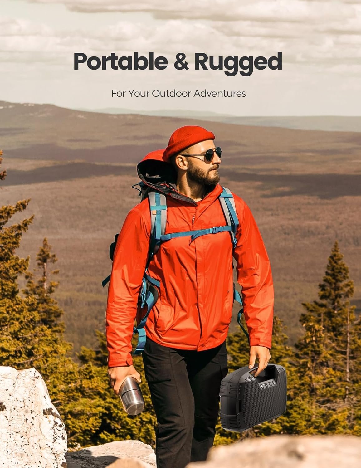 RUGGED PORTABLE OUTDOOR SPEAKER: This travel speaker with an ergonomic handle makes it much more convenient to take it with you on the go. You can enjoy your favorite music, podcasts, and audiobooks, indoors or outdoors. This wireless speaker is durable and shockproof enough to withstand a few bumps and bruises along the way thanks to its front and back metal grills. What’s in the box: a Bluetooth speaker, a Type-C charging cable, an AUX cable, and a user guide