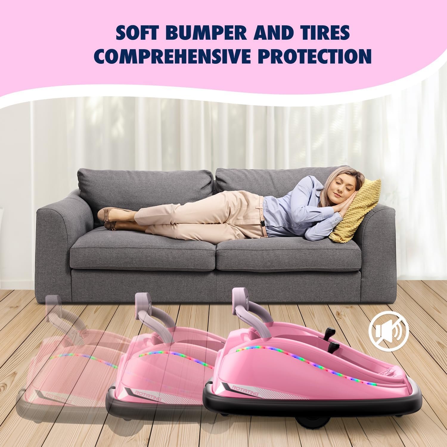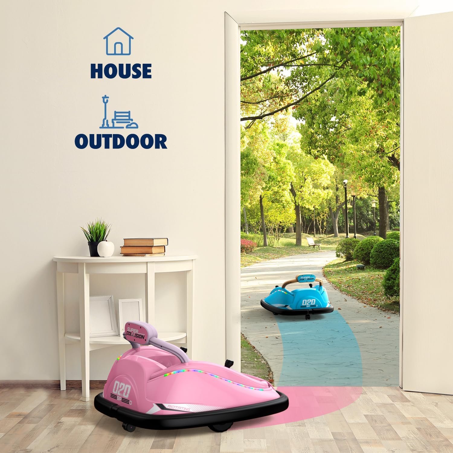 GIFT FOR BOYS&GIRLS: This bumper car is a perfect addition to interactive and group games. Kids can bump each other for more riding fun. And this bumper vehicle has a music player, LED flashlights, and a horn suitable for kids to ride even at night. It is a perfect gift for boys and girls.