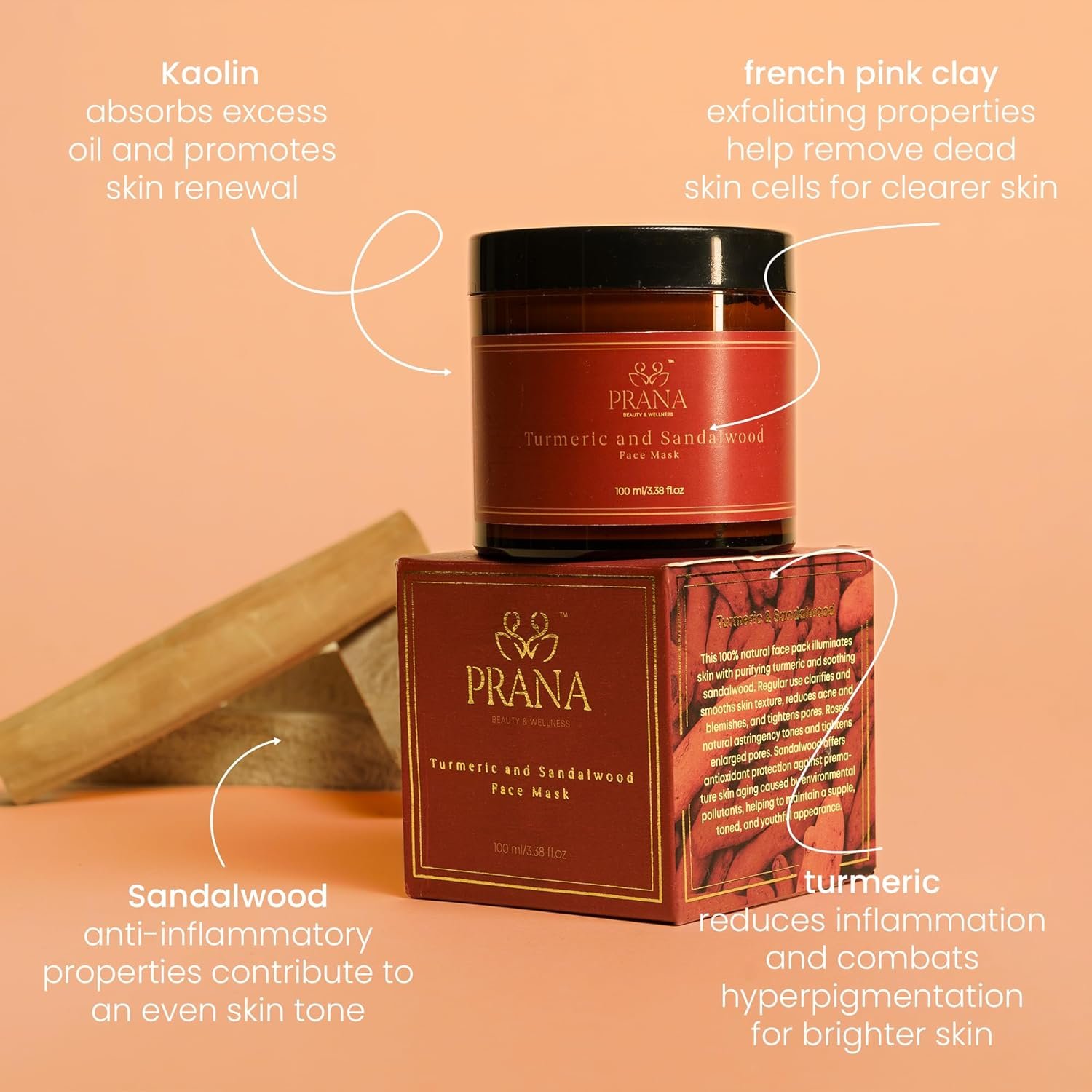 Prana’s Turmeric and Sandalwood Face Mask is a 100% natural blend harnessing the purifying properties of turmeric and the soothing essence of sandalwood, allowing you to pamper your skin with the goodness of nature for visible and lasting results