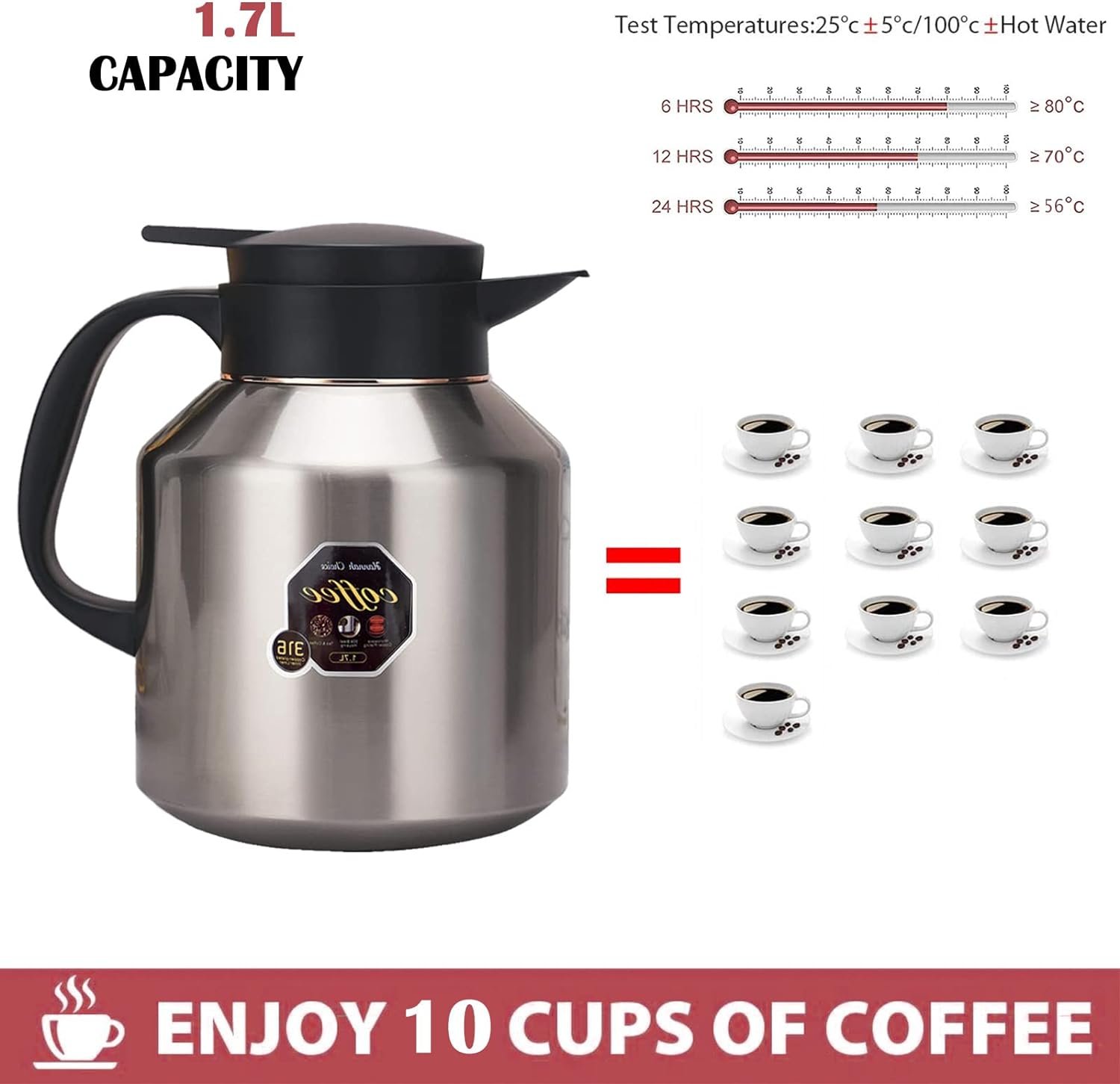☕️【Large capacity】1.7 litre capacity, ideal for serving hot drinks at various events.