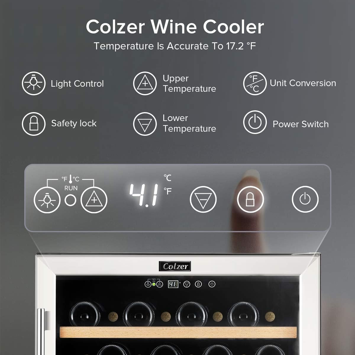 🥂 【The Quietest Wine Cooler】- Colzer Wine cooler has a very stable wine cabinet material. Wine cooler weighs 100 pounds and is specially designed for reducing noise. And have a stylish and elegant appearance to show your taste