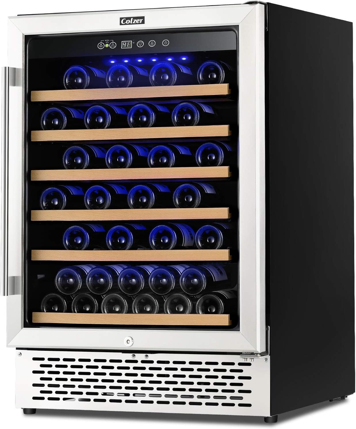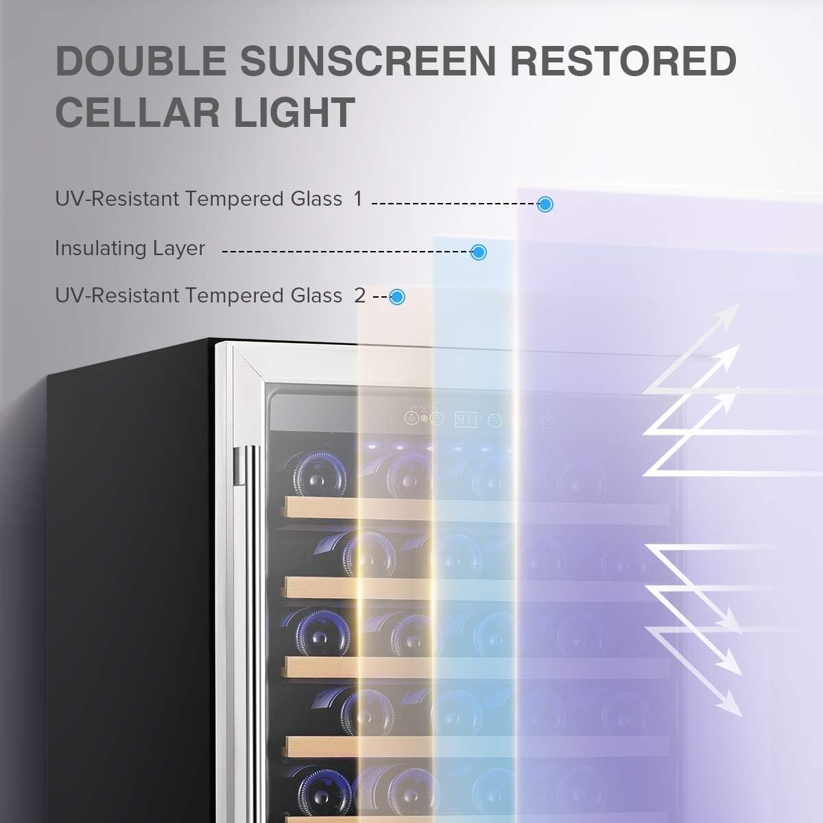 🥂 【100% Light Barrier】- Colzer wine cooler got double toughened glass door + hollow layer, perfect 3 layer light block, let your wine enjoy her favorite ‘wine cellars light’ to sleep
