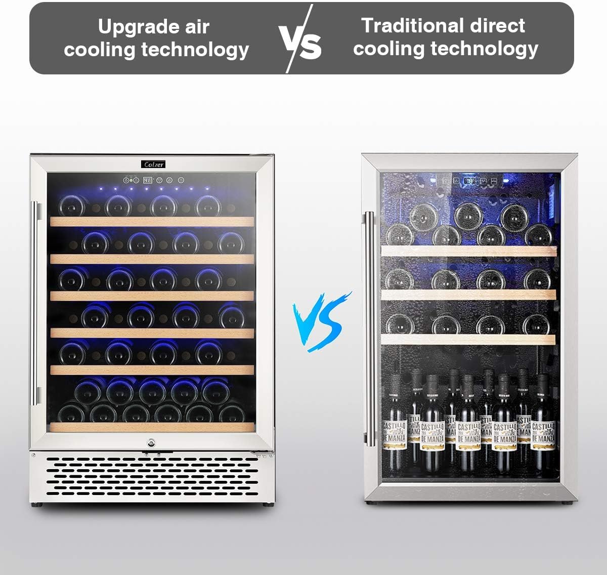 🥂 【Fresh internal environment】- Colzer wine cooler Upgraded air cooling system + activated carbon filter system+ solid wood wine rack, so that your wine cabinet after years of use without any odor and that the aroma of wood enriches the bouquet