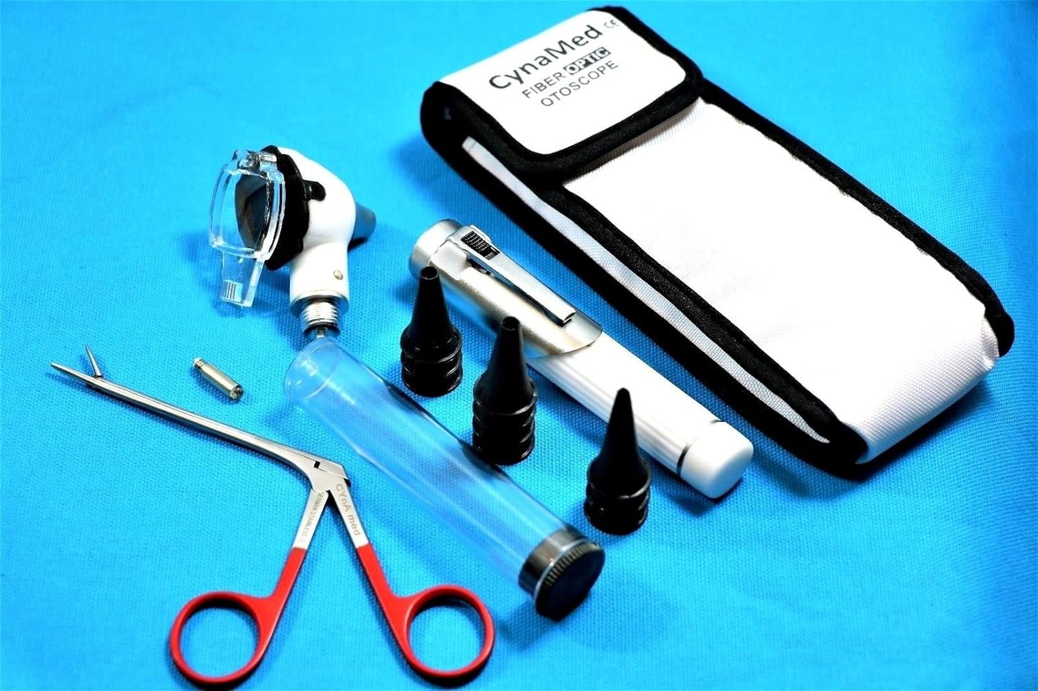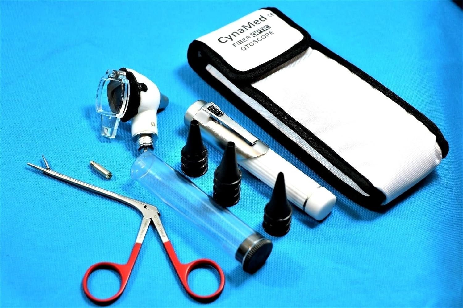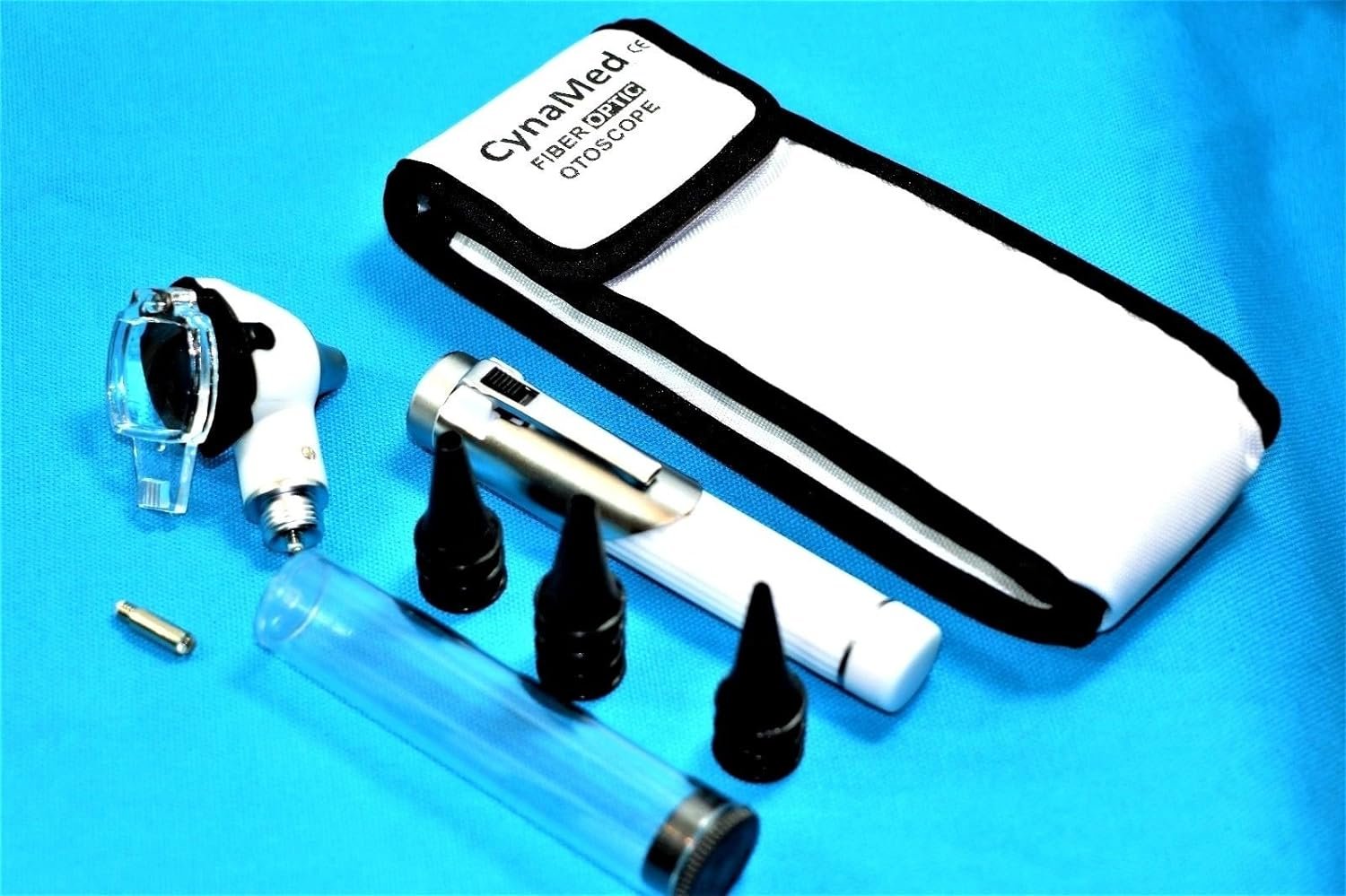 PRODUCT DETAIL :1 SET Professional Fiber Optic Mini Otoscope SET WHITE PREMIUM A+QUALITY+ 1 FREE BULB + 1 EAR NOSE ALIGATOR FORCEPS brand new mini Otoscope set for medical examinations perfect for professional health care providers and students Set Includes: ___________________________________________________ Comes with plastic disposable specula tube (1 tube includes 10 speculas in size 2.5mm to 4.0mm) 1x Otoscope head 1 FREE EXTRA REPLACEMENT BULB 1 HANDLE 1 EAR NOSE ALIGATOR FORCEPS Comes with matching Velcro pouch for safe storage