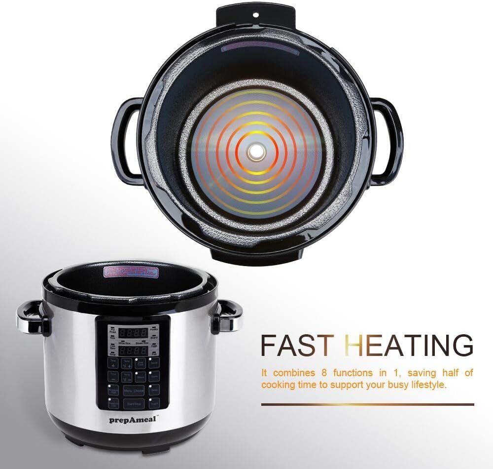 8-IN-1 Multi-Functional Pot : 1 Electric Pressure Cooker replaces 8 common kitchen appliances including Pressure Cooker, Slow Cooker, Rice Cooker, Brown/Sauté Pan, Yogurt Maker, Steamer, Warmer, and egg cooker. It combines 8 functions in 1, saving 70% cooking time to support your busy lifestyle.