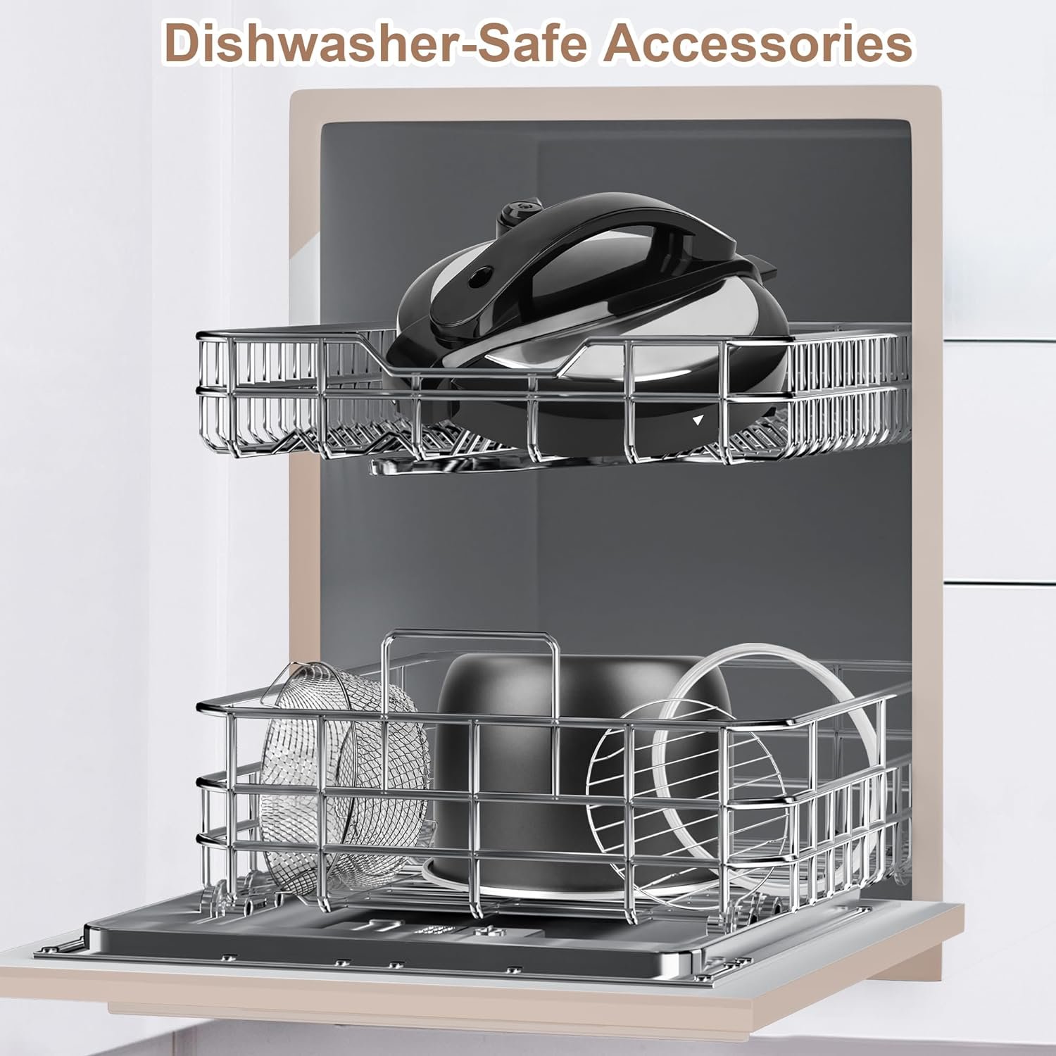 【6QT Large Capacity & Easy to Clean】: 6-qt Non-stick inner pot is PFOA-free & BPA-free, it can make dishes for up to 6 people, perfect for growing families, or meal prepping and batch cooking for singles. Fingerprint-resistant, stainless-steel sides and dishwasher-safe lid, inner pot, and accessories make cleanup a breeze.
