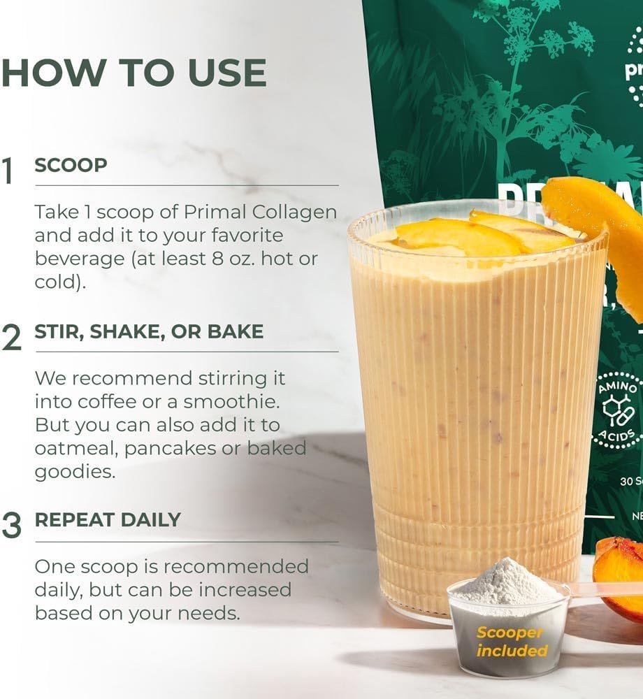 Featuring GelcoPEP Technology: Primal Collagen is formulated to easily dissolve into your drink of choice, for an unflavored collagen powder that is easy to add to your everday routine