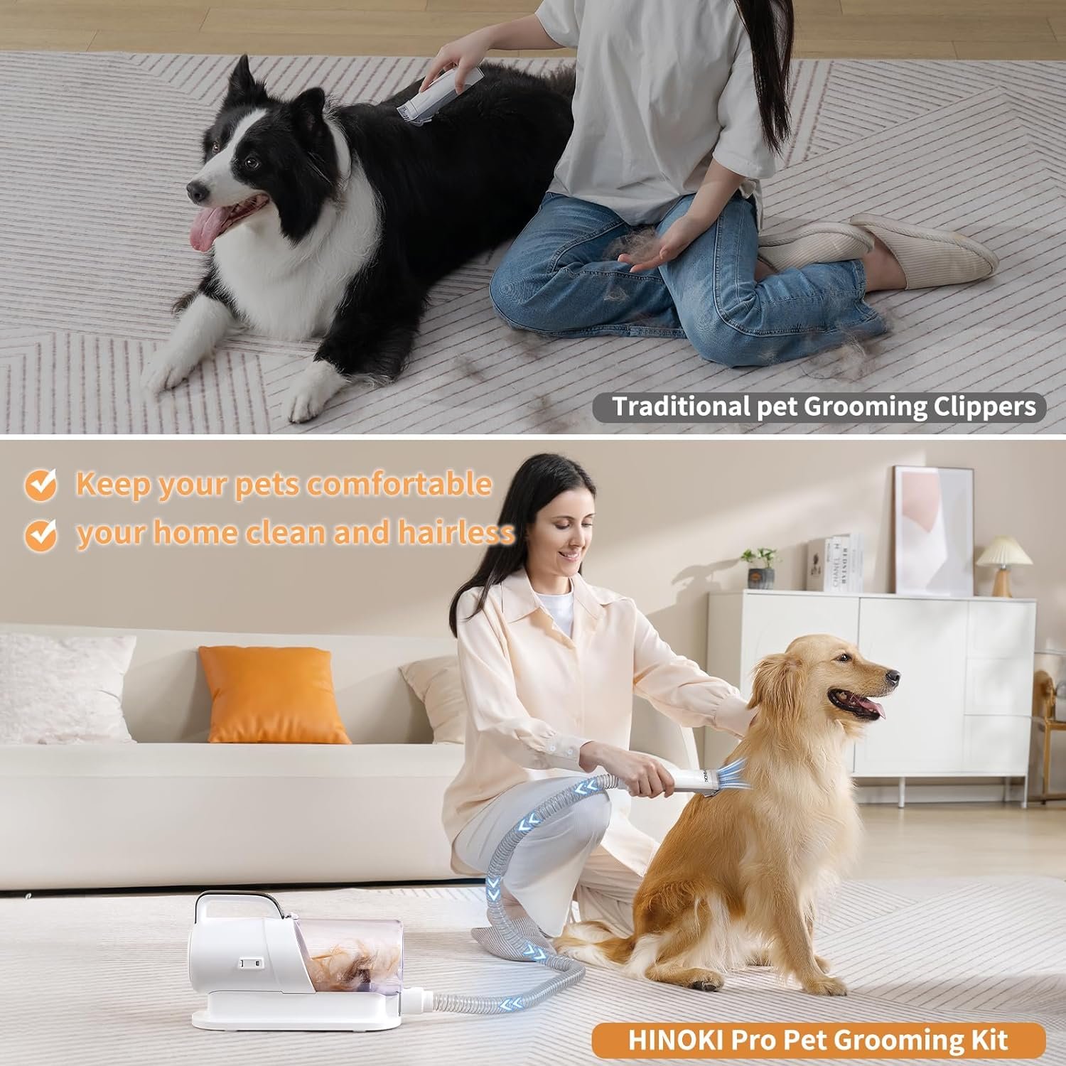 【 Restore a tidy house 】HINOKI Pet Grooming Set. 15kPa suction is equivalent to a miniature vacuum cleaner, which can easily clean and collect clothes, beds, sofas, corners and other hair, and solve the bed/sofa/car/keyboard crevices of dust.
