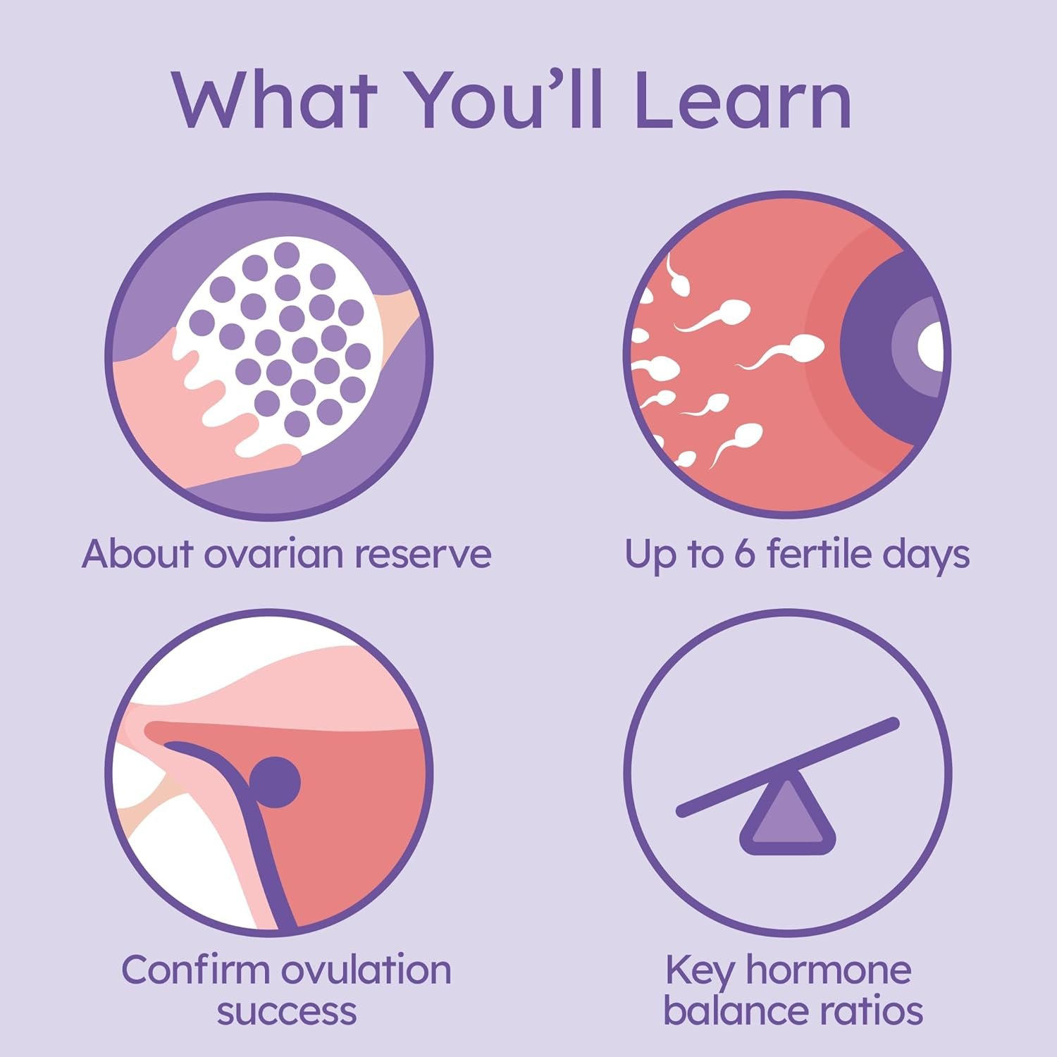 MEDICAL-QUALITY AT HOME FERTILITY TEST. If you want to track your whole cycle, get Complete! Measure all 4 cycle hormones for a comprehensive fertility map, including a snapshot of ovarian reserve, up to 6 fertile days, successful ovulation confirmation during the implantation window, and an actionable, end of cycle fertility hormone report.