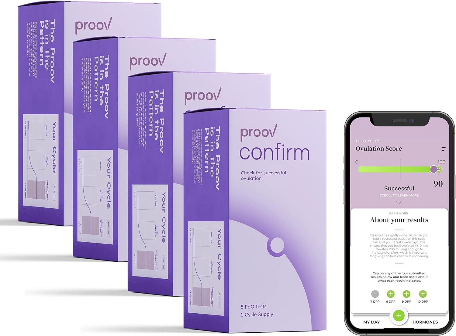 WORKS WITH THE FREE PROOV INSIGHT APP: No extra device needed! Pair our tests with the Proov Insight app to take your knowledge to the next level. You’ll get information on when to test, numeric results including your Proov-exclusive Ovulation Score, plus action plans to help you meet your goals.