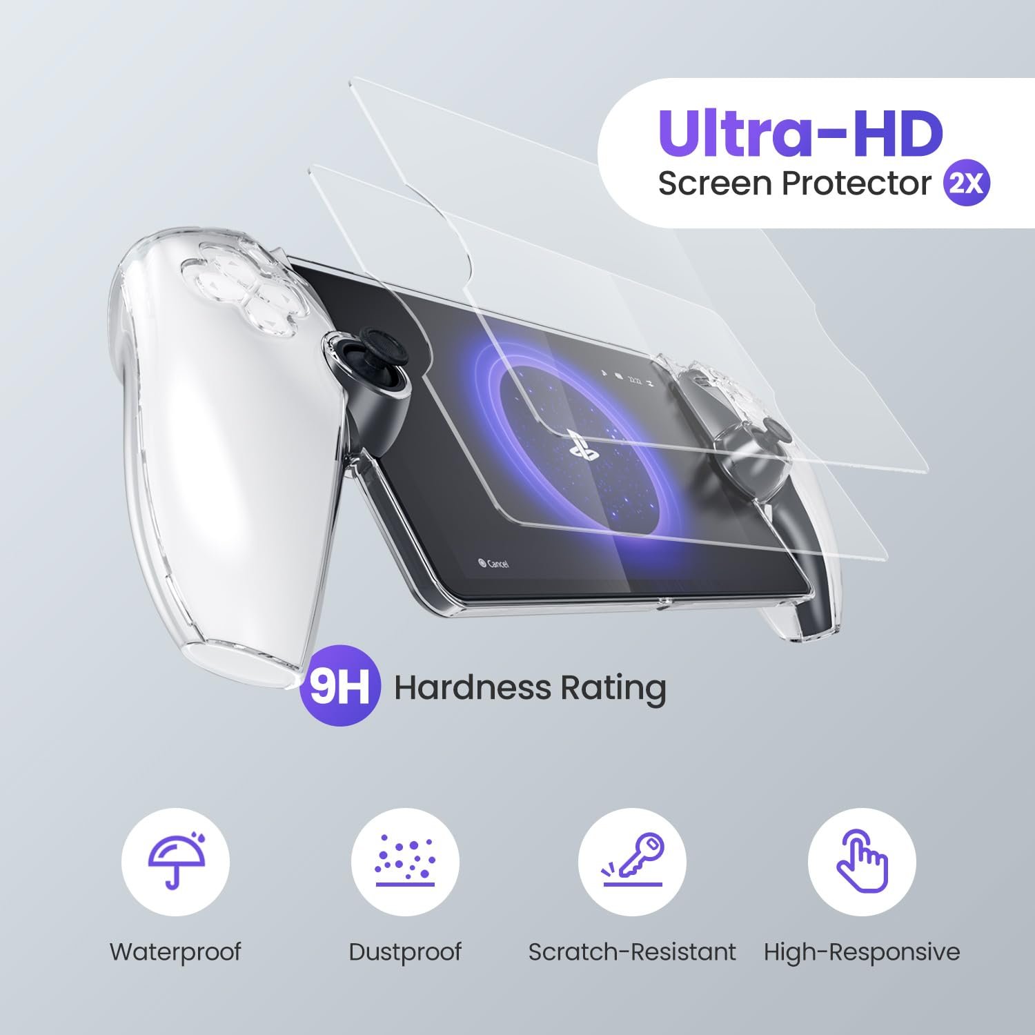 đăClear PC Protective Cover & 2x HD Screen ProtectorsăOur high-quality PC protective cover snugly fits the PlayStation portal, easy to assemble, ensuring easy access to all ports while offering daily wear protection. The 2-pack 9H hardness HD screen protectors (waterproof & dustproof) guard against scratches while preserving screen clarity and touch responsiveness.