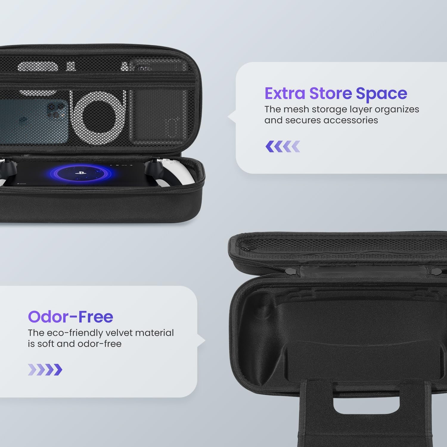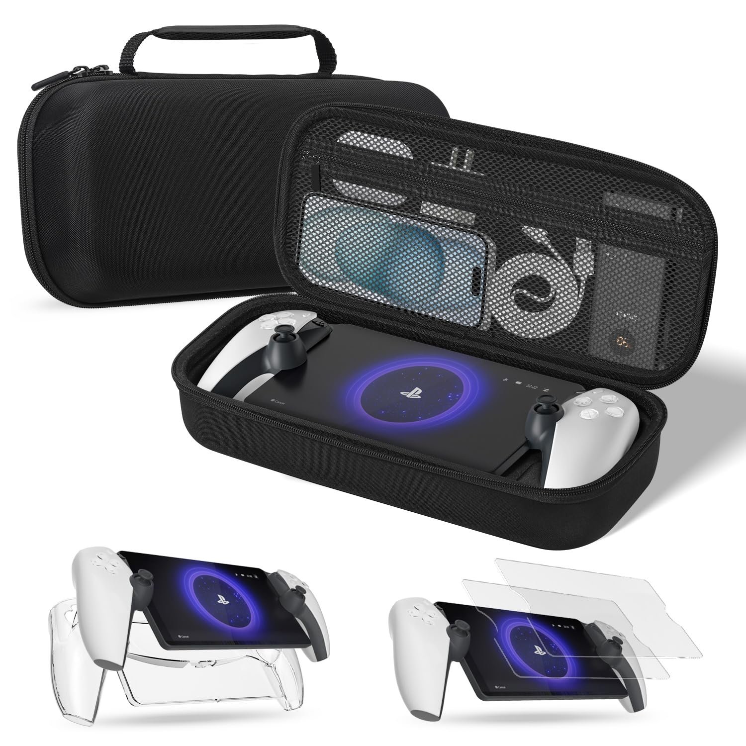 đŽăFull-Protection Kit for PlayStation PortalăThis 3-in-1 PS portal set includes a thickened EVA hard-shell carrying case, a precise-fit PC protective cover, and 2 HD tempered glass screen protectors. The carrying case is lightweight & sturdy, waterproof, shock-resistant, compressive (up to 100 lbs), dustproof, and easy to clean, offering all-around protection for your PS portal while on the go or traveling.